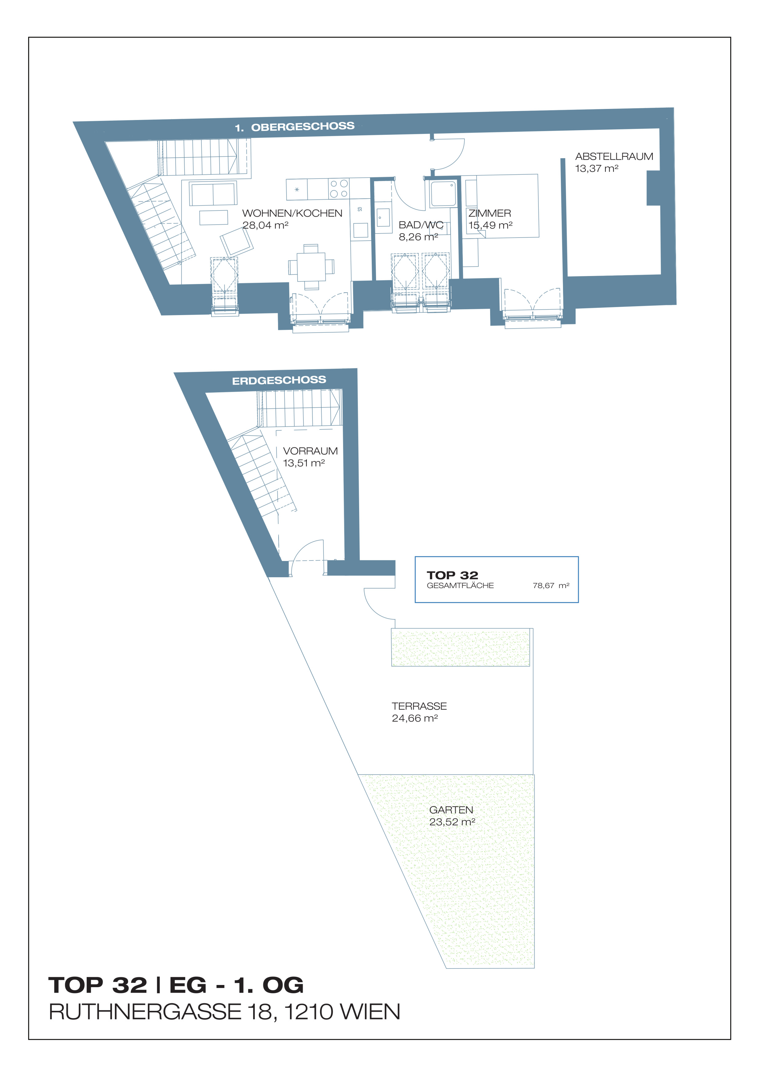 Die Ruthnergasse im 21. Wiener Gemeindebezirk verbindet ruhiges Wohnen mit guter Infrastruktur. Die S-Bahn-Station Wien Siemensstraße sowie der Verkehrsknoten Floridsdorf mit U6 und S-Bahn sorgen für eine schnelle Anbindung in die Wiener Innenstadt. Einkaufsmöglichkeiten, Gastronomie und Freizeitangebote befinden sich im direkten Umfeld, während nahegelegene Grünflächen zusätzliche Erholungsmöglichkeiten bieten. Dadurch entsteht eine attraktive Wohnlage mit hoher Lebensqualität und nachhaltigem Vermietungspotenzial.