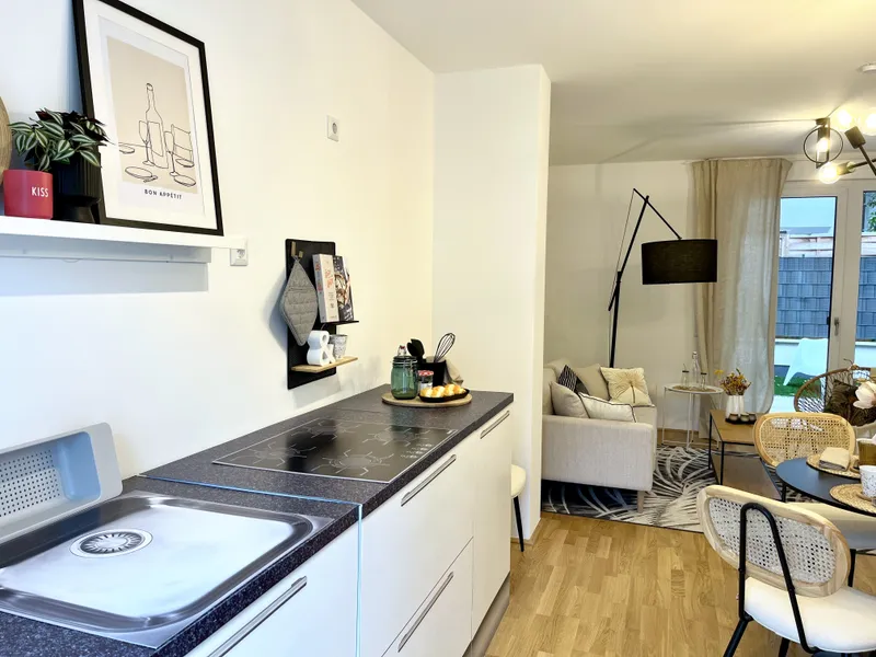 Einziehen und wohlfühlen - die Wohneinheiten werden schlüsselfertig übergeben und bieten Lebensraum für Singles, Paare und Familien. Für ein rundum schönes und gemütliches Zuhause sorgen hochwertige Materialen, abgerundet durch großzügige, hofseitige Freiflächen. Dadurch wird die Wohnanlage zu einem privaten, ruhigen Rückzugsort.