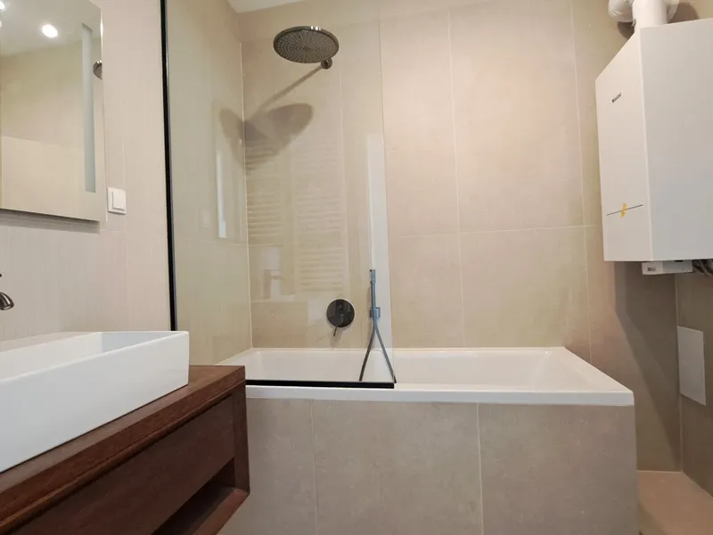 * Badezimmer mit Badewanne und Waschmaschinenanschluss