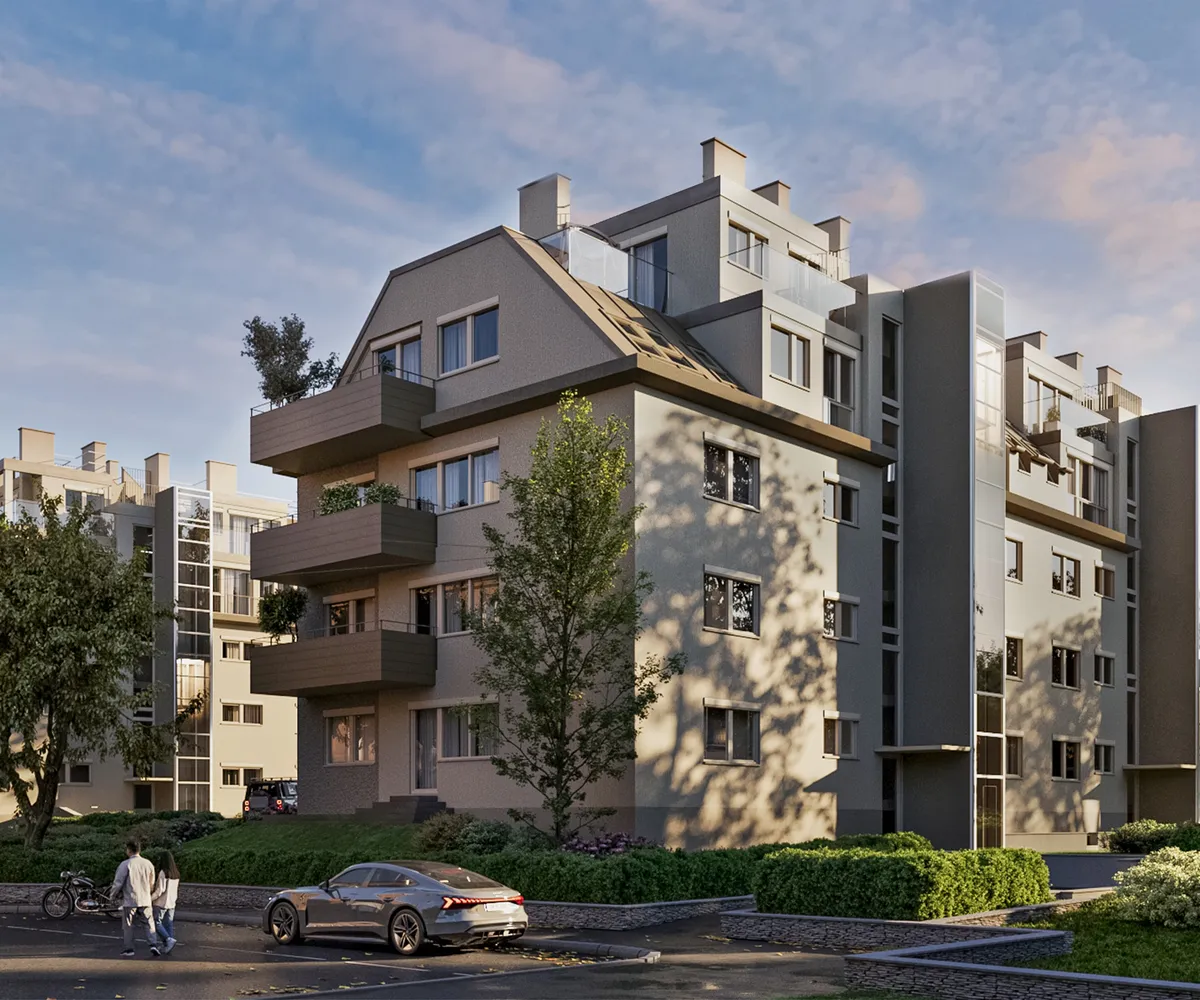 Alle Einheiten verfügen über traumhafte Freiflächen – von einladenden Balkonen über idyllische Gärten bis hin zu exklusiven Dachterrassen mit beeindruckendem Grünblick – die eine harmonische Verbindung zwischen Innen- und Außenraum schaffen.