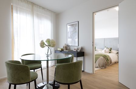 Inmitten des auflebendem Sonnwendviertel, bietet der moderne Wohnbaukomplex einen hauseigenen, hochwertig ausgestatteten Indoor-Fitnessbereich, sowie einen Co-Working-Space und eine Rooftop-Terrace.