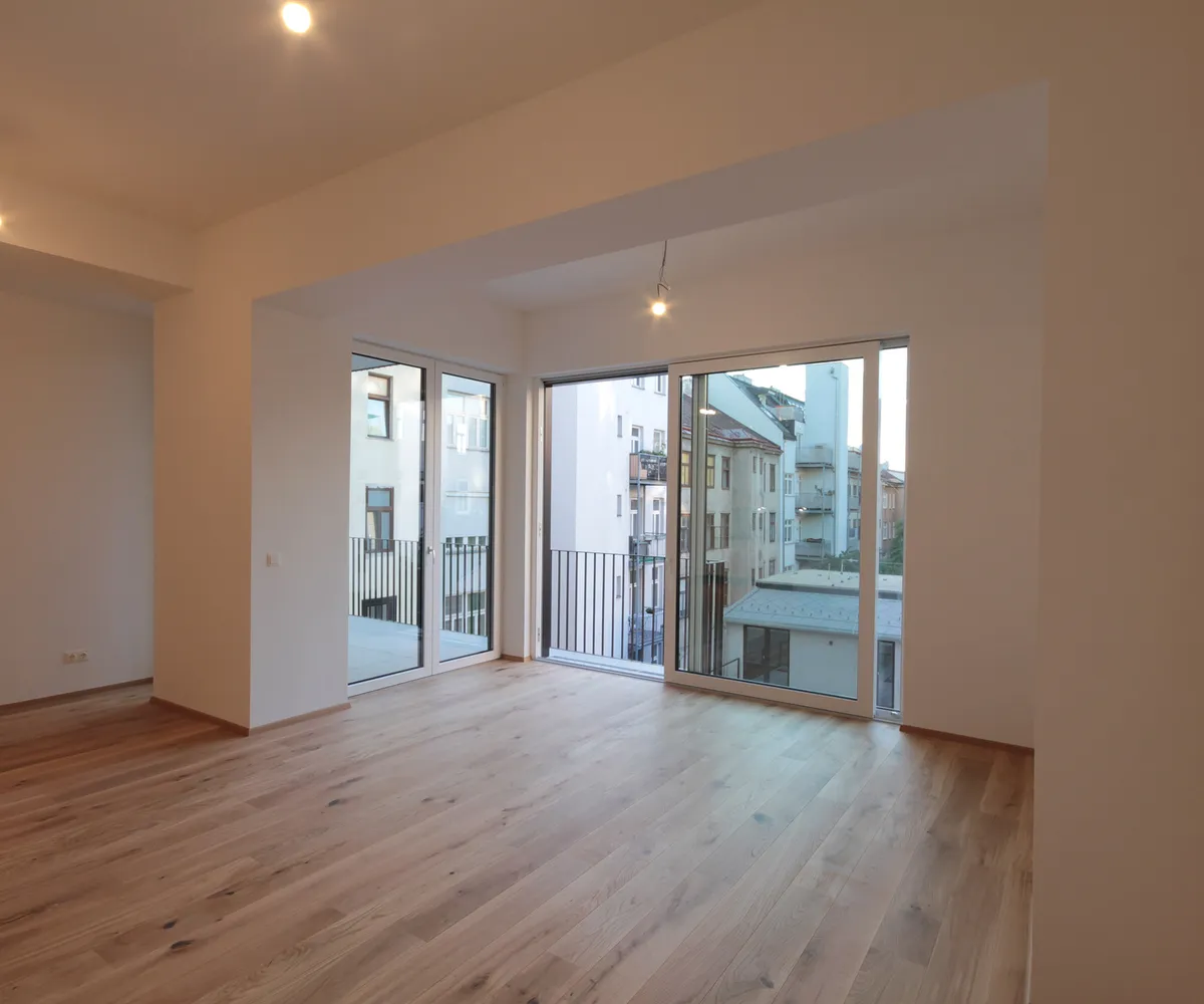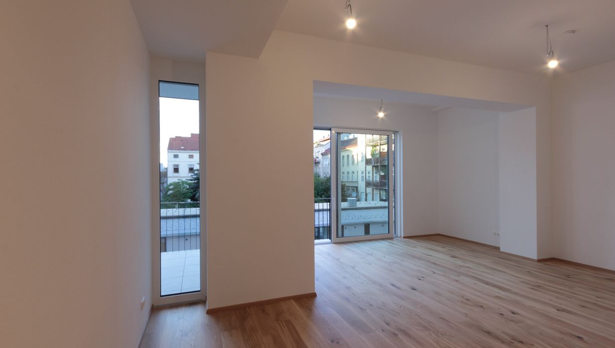 Die Immobilie befindet sich im 2. Liftstock eines im Jahre 1971 erbauten, gepflegten Hauses und erstreckt sich über eine Wohnfläche von ca. 80 m². Die Wohnung teilt sich in eine große Wohnküche, zwei Zimmer, einen Balkon, eine kleine Loggia, ein Badezimmer und eine Gästetoilette auf. Die Haupträume sind mit einem hochwertigen Parkettboden ausgekleidet, der Vorraum sowie die Nassräume sind gefliest. Die Wohnung verfügt in allen Räumen über eine Fußbodenheizung sowie über ein eigenes Kellerabteil. Die Immobilie wird unmöbliert vermietet. Die gesamte Wohnung ist aufgrund der vielen hohen Fenster lichtdurchflutet und wirkt dadurch äußerst gemütlich und freundlich.