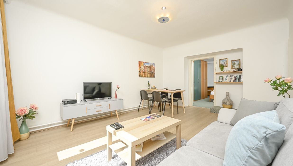 Ein Zuhause, das Ruhe und Stadtnähe vereint: Diese 55 m² große, liebevoll gepflegte 2-Zimmer-Wohnung liegt im Erdgeschoß eines gepflegten Hauses aus dem Jahr 1956. Küche und Wohnzimmer öffnen sich zum begrünten Innenhof – ein seltener Luxus in zentraler Lage. Das Schlafzimmer ist straßenseitig zur wenig befahrenen Sedlitzkygasse orientiert und bietet eine angenehme Wohnatmosphäre.