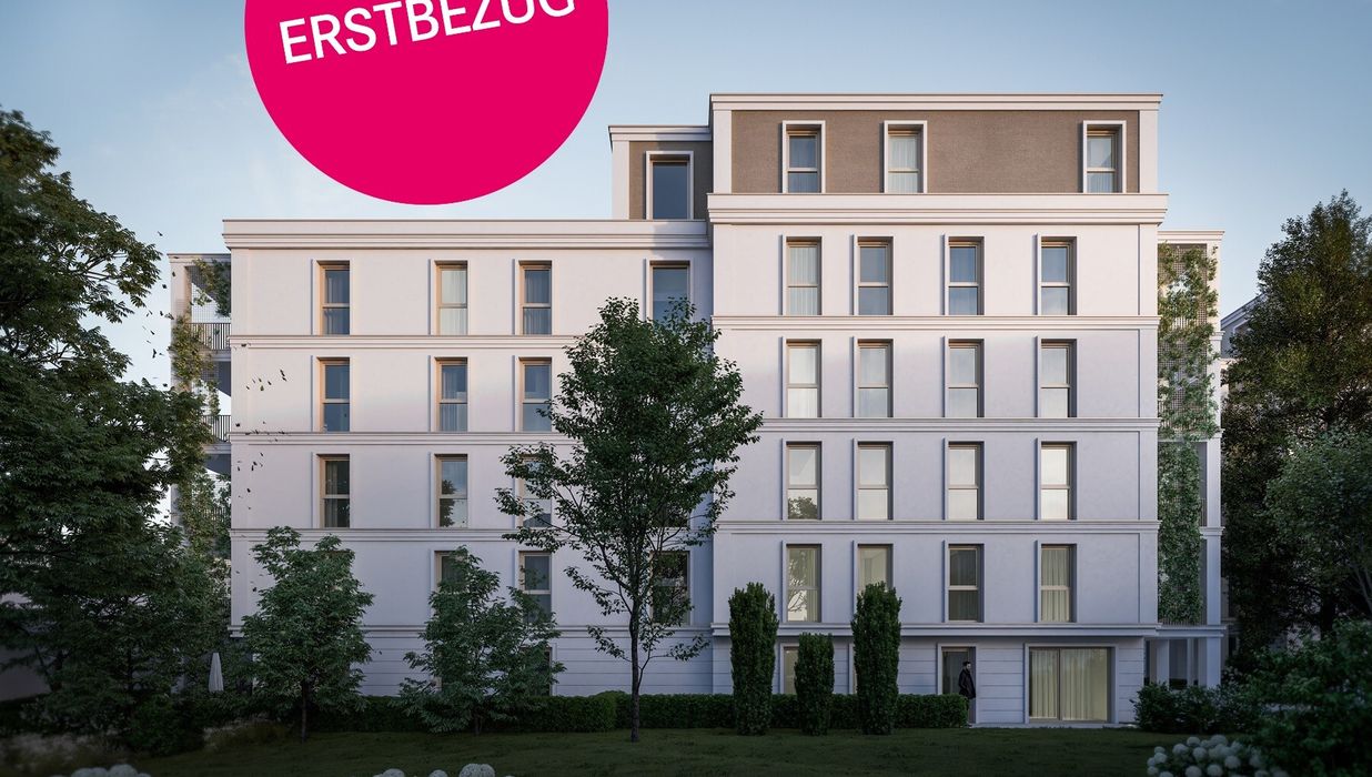 Fünf Stadtvillen beherbergen 126 Wohnungen und 100 Garagenstellplätze von parkartigem Grünraum umgeben in bester Cottagelage.