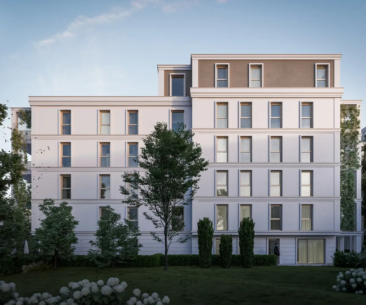 In den fünf eleganten Stadtvillen stehen insgesamt 126 hochwertige Wohnungen und 100 Garagenstellplätze zur Verfügung, eingebettet in eine großzügige, parkähnliche Grünanlage. Diese erstklassige Cottage-Lage bietet nicht nur Ruhe und Erholung, sondern auch eine perfekte Anbindung an die städtische Infrastruktur.