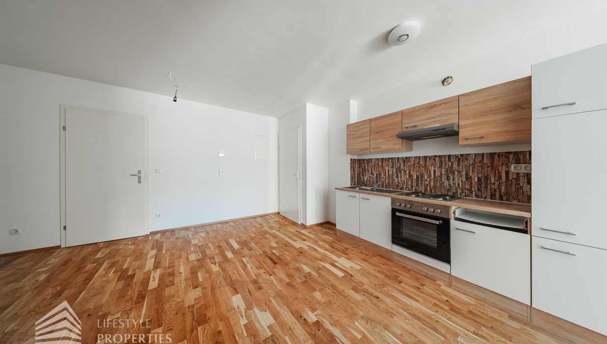 Wir freuen uns, Ihnen die Gelegenheit bieten zu dürfen, eine moderne, im Jahr 2023 fertiggestellte Wohnung zu erwerben. Die ca. 43 m² große Einheit befindet sich im ersten Stock und ist bequem mit dem Lift erreichbar. Es handelt sich um einen Erstbezug mit allen Vorteilen eines Neubaus. Die Wohnfläche teilt sich auf in ein Wohn/- Esszimmer, ein Schlafzimmer und ein Badezimmer.