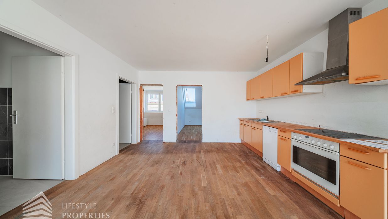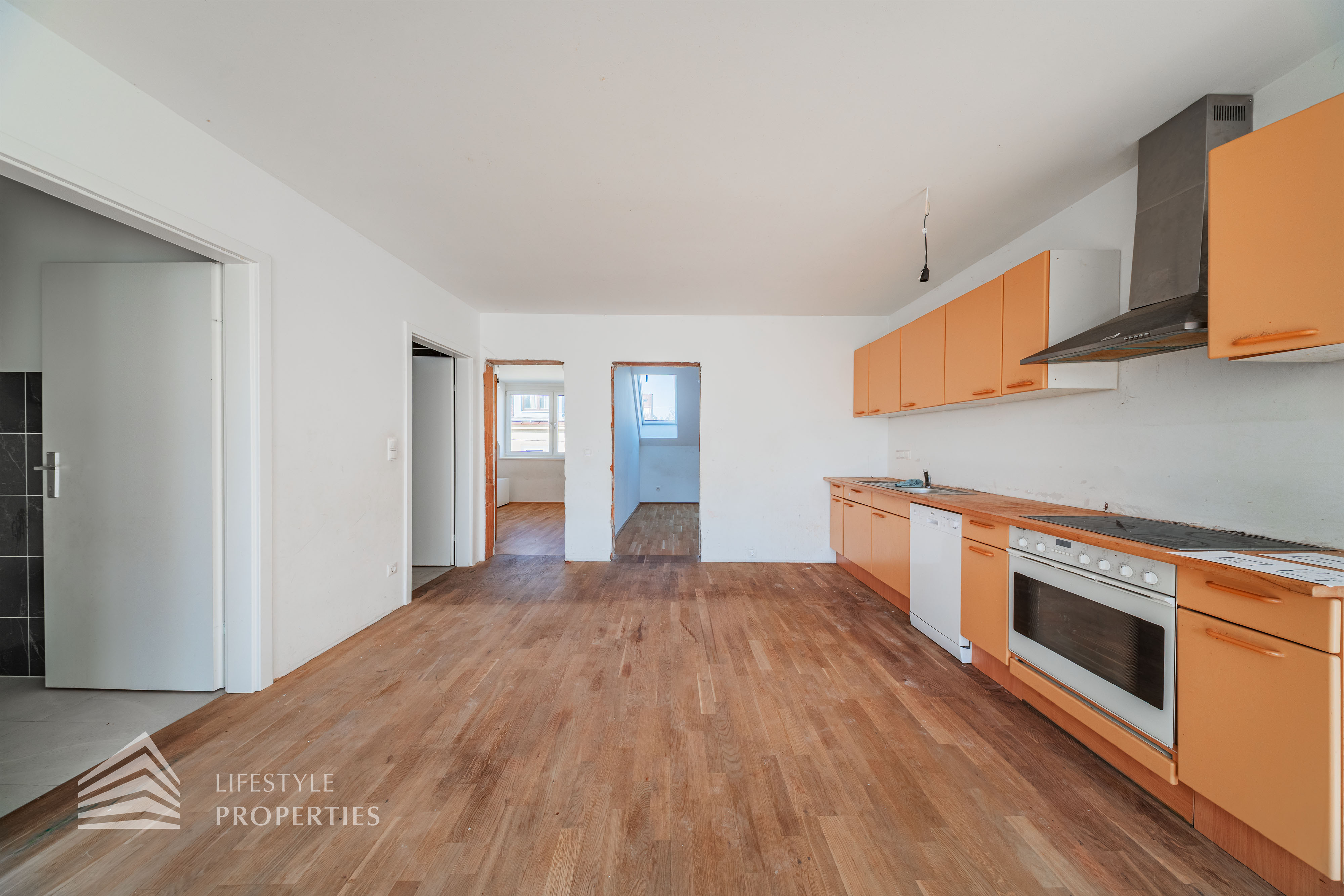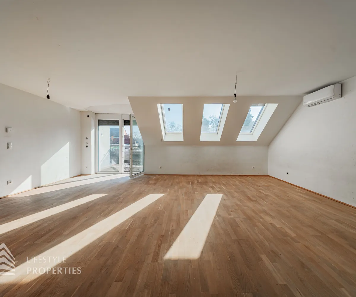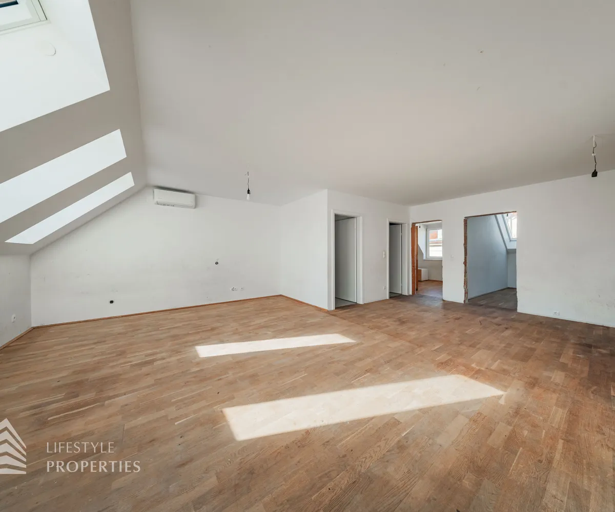 Wir freuen uns, Ihnen die Gelegenheit bieten zu dürfen, eine moderne, im Jahr 2023 fertiggestellte Wohnung zu erwerben. Die ca. 76 m² große Einheit befindet sich im ersten Dachgeschoss und ist bequem mit dem Lift erreichbar und überzeugt durch eine optimale und durchdachte Raumaufteilung. Die Wohnfläche teilt sich auf in einen großzügigen Wohn-/Essbereich, zwei Schlafzimmer, ein Badezimmer, ein separates WC und einen Abstellraum.