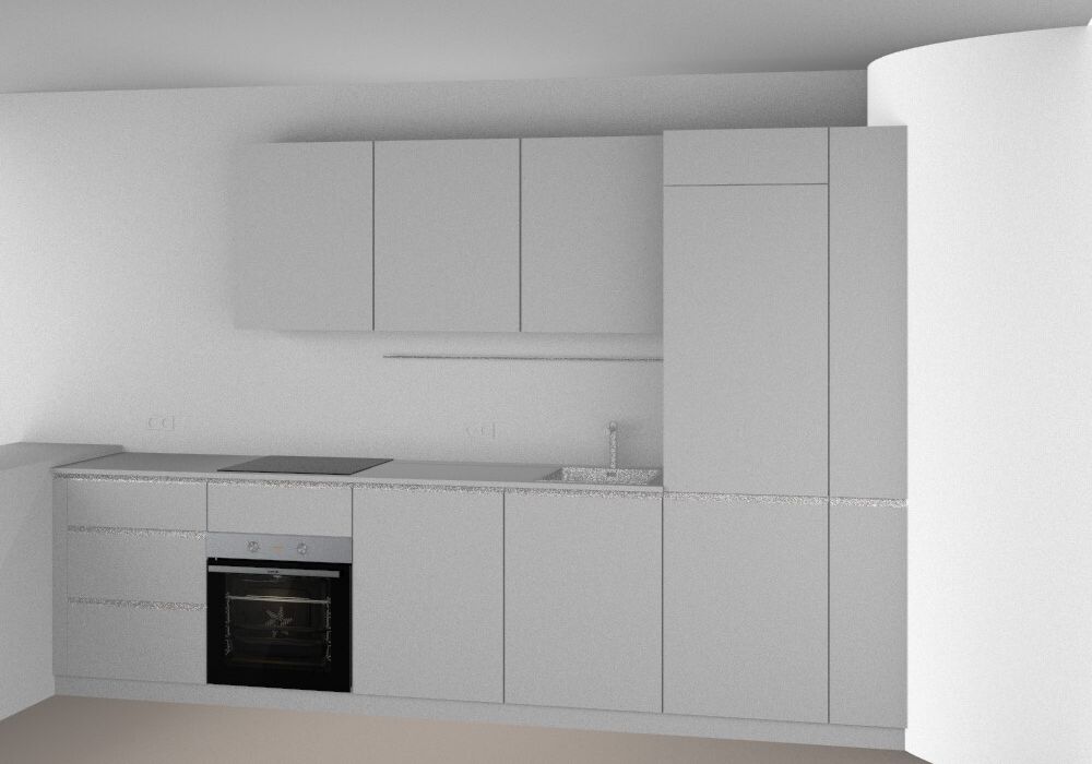 Jede Wohnung wird mit einer neuen, modernen Küche ausgestattet. Die derzeit gezeigten Bilder sind KI-generiert.