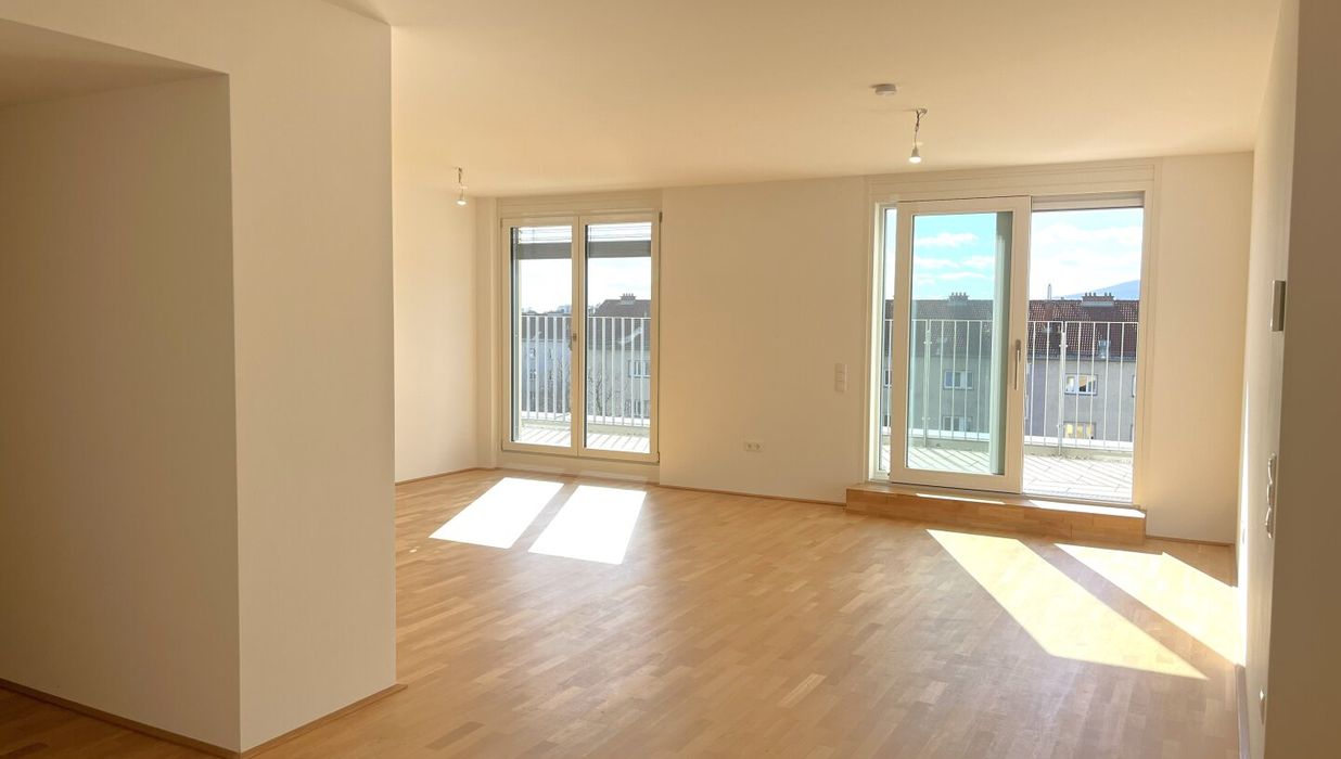 Zeitlos, elegant und funktional präsentiert sich das Kult23 im zukünftigen Kulturviertel von Liesing. Das moderne Wohnhaus mit 38 Apartments verteilt auf fünf Etagen und zwei Dachgeschosse steht für zeitgemäßen Lifestyle und Wohnkomfort. Die 39 bis 109 m 2 großen Wohnungen mit ihren 2 bis 4 Zimmern verfügen über eigene Balkone, Terrassen oder Gärten . Der Gemeinschaftsgarten mit kleinem Spielplatz fördert den sozialen Austausch untereinander. Dort befindet sich auch ein separates Atelier, das ebenfalls erworben werden kann. Zusätzliches Plus sind die 23 Tiefgaragenplätze , die sich teilweise zum E-Parkplatz aufrüsten lassen.