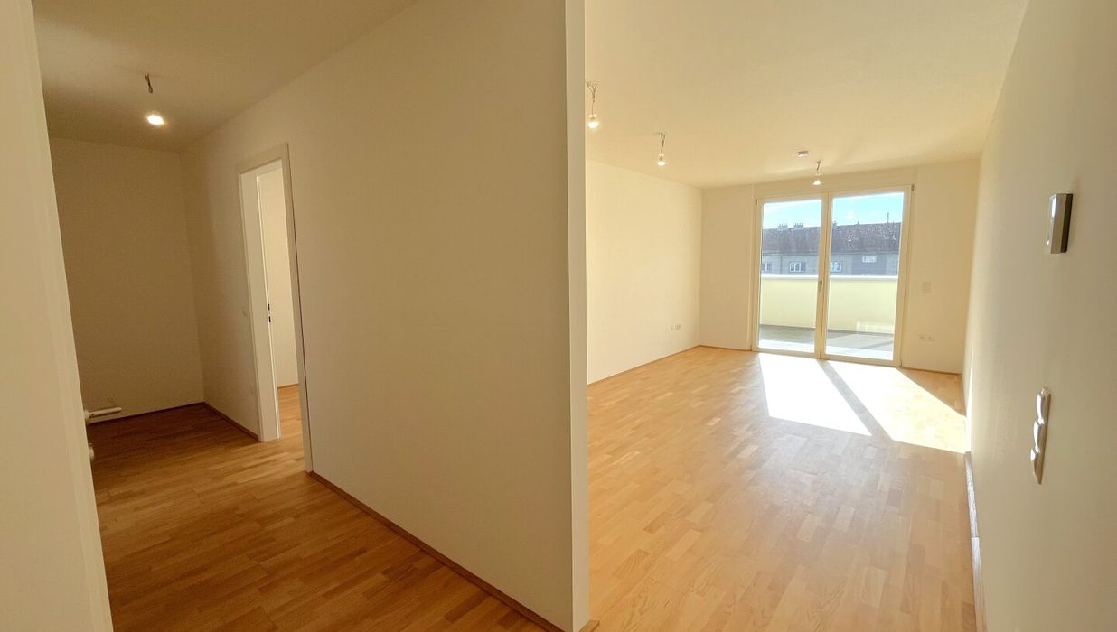 Zeitlos, elegant und funktional präsentiert sich das Kult23 im zukünftigen Kulturviertel von Liesing. Das moderne Wohnhaus mit 38 Apartments verteilt auf fünf Etagen und zwei Dachgeschosse steht für zeitgemäßen Lifestyle und Wohnkomfort. Die 39 bis 109 m 2 großen Wohnungen mit ihren 2 bis 4 Zimmern verfügen über eigene Balkone, Terrassen oder Gärten . Der Gemeinschaftsgarten mit kleinem Spielplatz fördert den sozialen Austausch untereinander. Dort befindet sich auch ein separates Atelier, das ebenfalls erworben werden kann. Zusätzliches Plus sind die 23 Tiefgaragenplätze , die sich teilweise zum E-Parkplatz aufrüsten lassen.