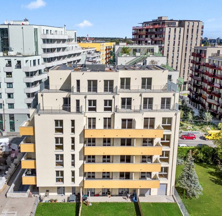 Zeitlos, elegant und funktional präsentiert sich das Kult23 im zukünftigen Kulturviertel von Liesing. Das moderne Wohnhaus mit 38 Apartments verteilt auf fünf Etagen und zwei Dachgeschosse steht für zeitgemäßen Lifestyle und Wohnkomfort. Die 39 bis 109 m 2 großen Wohnungen mit ihren 2 bis 4 Zimmern verfügen über eigene Balkone, Terrassen oder Gärten . Der Gemeinschaftsgarten mit kleinem Spielplatz fördert den sozialen Austausch untereinander. Dort befindet sich auch ein separates Atelier, das ebenfalls erworben werden kann. Zusätzliches Plus sind die 23 Tiefgaragenplätze , die sich teilweise zum E-Parkplatz aufrüsten lassen.
