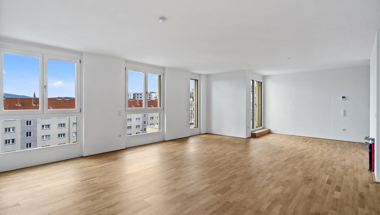 Zeitlos, elegant und funktional präsentiert sich das Kult23 im zukünftigen Kulturviertel von Liesing. Das moderne Wohnhaus mit 38 Apartments verteilt auf fünf Etagen und zwei Dachgeschosse steht für zeitgemäßen Lifestyle und Wohnkomfort. Die 39 bis 109 m 2 großen Wohnungen mit ihren 2 bis 4 Zimmern verfügen über eigene Balkone, Terrassen oder Gärten . Der Gemeinschaftsgarten mit kleinem Spielplatz fördert den sozialen Austausch untereinander. Dort befindet sich auch ein separates Atelier, das ebenfalls erworben werden kann. Zusätzliches Plus sind die 23 Tiefgaragenplätze , die sich teilweise zum E-Parkplatz aufrüsten lassen.