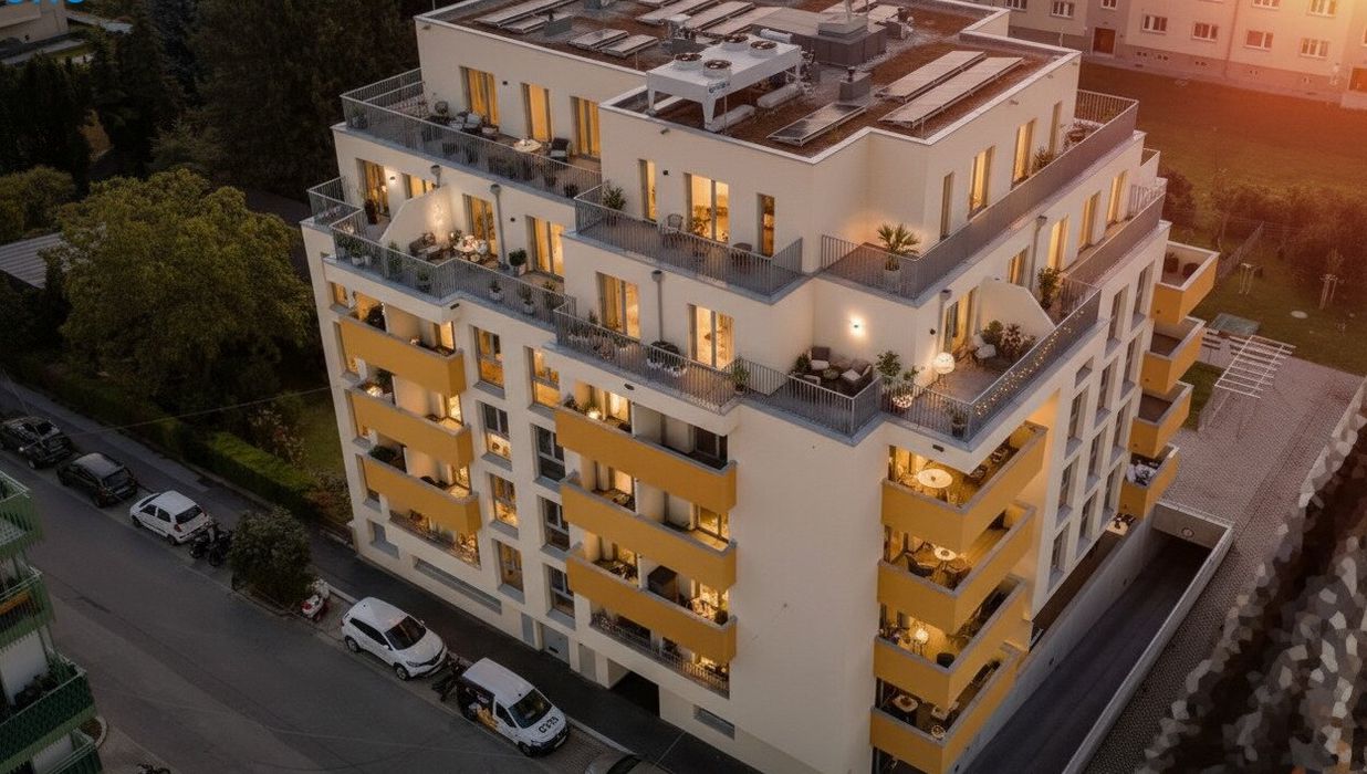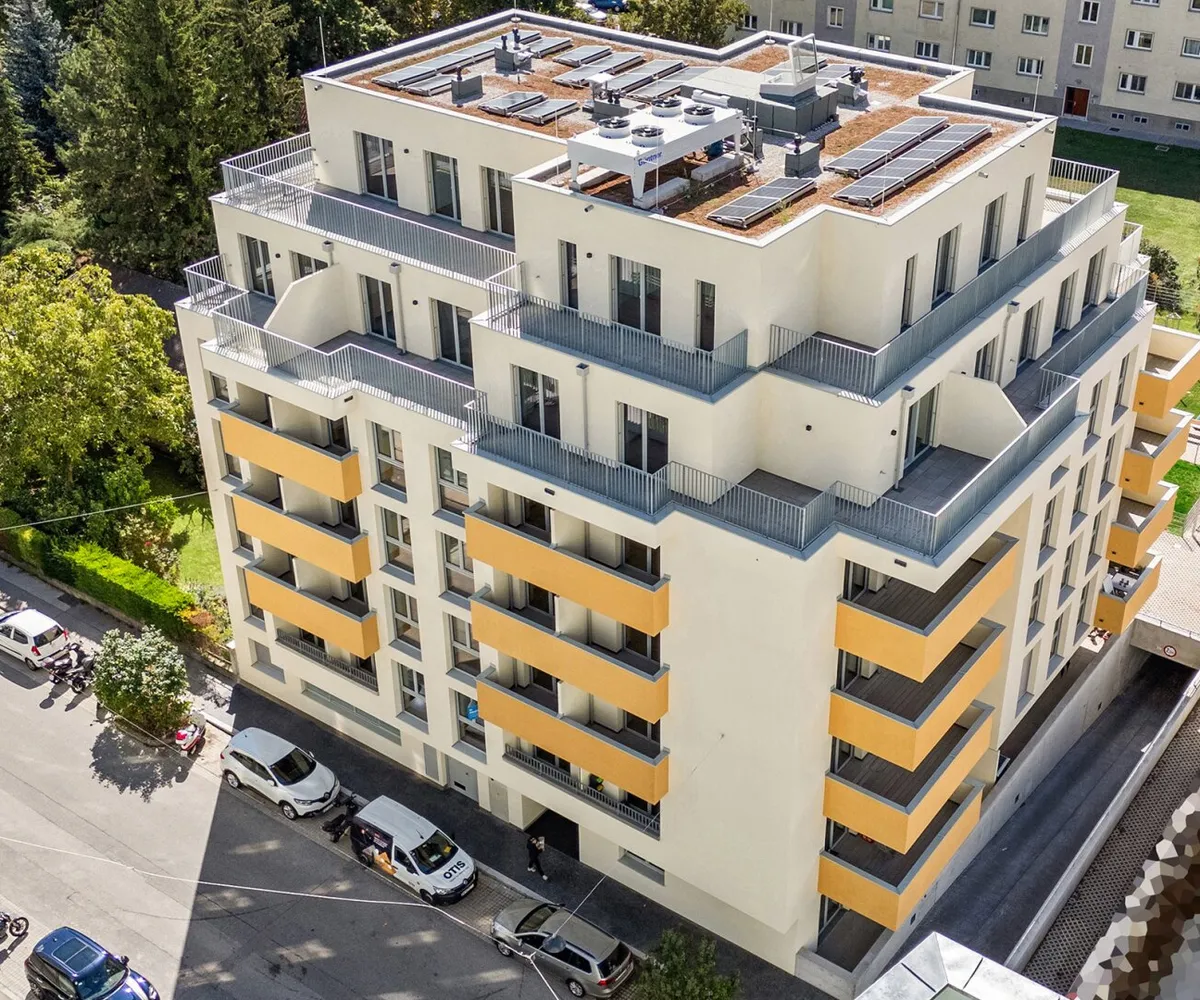 Zeitlos, elegant und funktional präsentiert sich das Kult23 im zukünftigen Kulturviertel von Liesing. Das moderne Wohnhaus mit 38 Apartments verteilt auf fünf Etagen und zwei Dachgeschosse steht für zeitgemäßen Lifestyle und Wohnkomfort. Die 39 bis 109 m 2 großen Wohnungen mit ihren 2 bis 4 Zimmern verfügen über eigene Balkone, Terrassen oder Gärten . Der Gemeinschaftsgarten mit kleinem Spielplatz fördert den sozialen Austausch untereinander. Dort befindet sich auch ein separates Atelier, das ebenfalls erworben werden kann. Zusätzliches Plus sind die 23 Tiefgaragenplätze , die sich teilweise zum E-Parkplatz aufrüsten lassen.