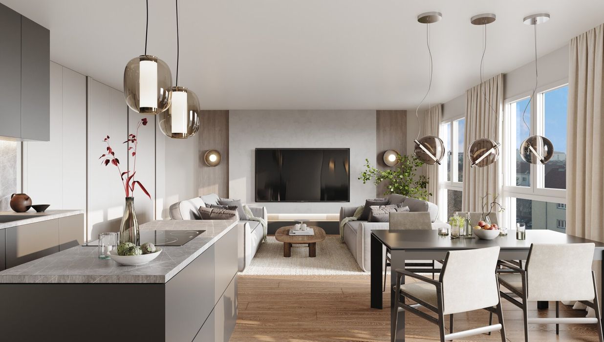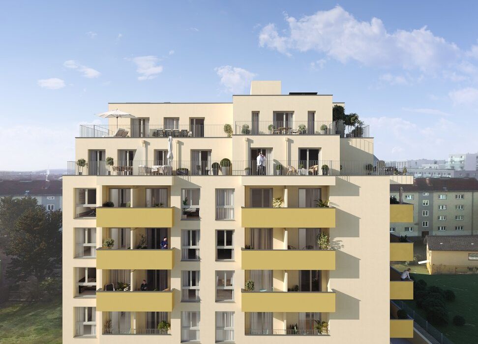 Zeitlos, elegant und funktional präsentiert sich das Kult23 im zukünftigen Kulturviertel von Liesing. Das moderne Wohnhaus mit 38 Apartments verteilt auf fünf Etagen und zwei Dachgeschosse steht für zeitgemäßen Lifestyle und Wohnkomfort. Die 39 bis 109 m 2 großen Wohnungen mit ihren 2 bis 4 Zimmern verfügen über eigene Balkone, Terrassen oder Gärten . Der Gemeinschaftsgarten mit kleinem Spielplatz fördert den sozialen Austausch untereinander. Dort befindet sich auch ein separates Atelier, das ebenfalls erworben werden kann. Zusätzliches Plus sind die 23 Tiefgaragenplätze , die sich teilweise zum E-Parkplatz aufrüsten lassen.