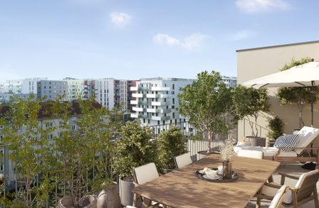 Zeitlos, elegant und funktional präsentiert sich das Kult23 im zukünftigen Kulturviertel von Liesing. Das moderne Wohnhaus mit 38 Apartments verteilt auf fünf Etagen und zwei Dachgeschosse steht für zeitgemäßen Lifestyle und Wohnkomfort. Die 39 bis 109 m 2 großen Wohnungen mit ihren 2 bis 4 Zimmern verfügen über eigene Balkone, Terrassen oder Gärten . Der Gemeinschaftsgarten mit kleinem Spielplatz fördert den sozialen Austausch untereinander. Dort befindet sich auch ein separates Atelier, das ebenfalls erworben werden kann. Zusätzliches Plus sind die 23 Tiefgaragenplätze , die sich teilweise zum E-Parkplatz aufrüsten lassen.