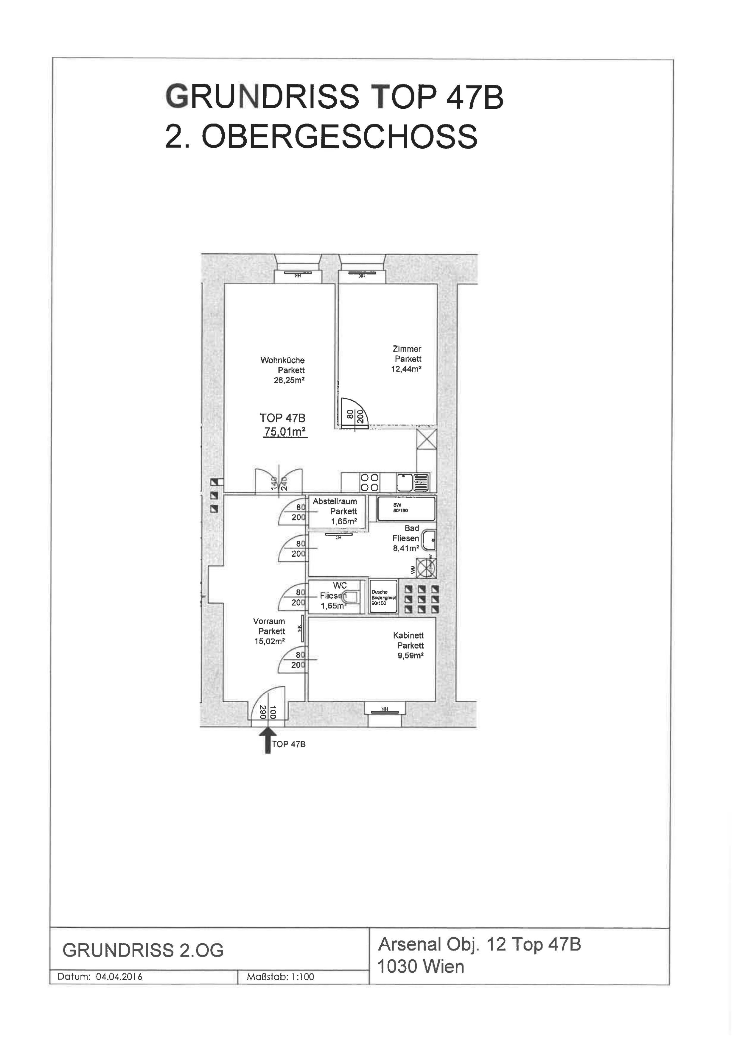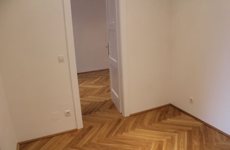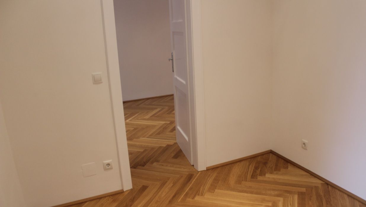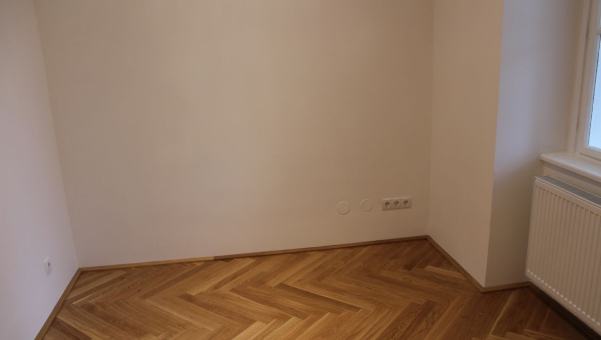 Die Wohnung befindet sich im 2. Obergeschoss und verfügt über eine großzügige Wohnküche, ein Schlafzimmer, ein extra Kabinett, ein Badezimmer mit Badewanne, Dusche und Waschmaschinenanschluss, ein separates WC sowie einen Abstellraum und einen Vorraum.