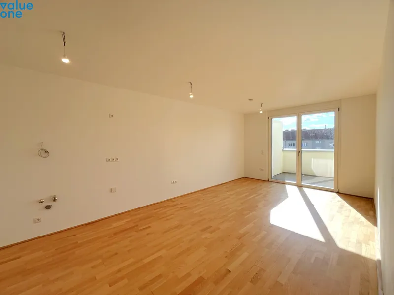 Die Wohnung befindet sich im 4. Obergeschoss und verfügt über eine Wohnküche, einen abgetrennten Schlafbereich, ein extra Kabinett, ein Badezimmer mit Badewanne, ein separates WC, sowie einen Vorraum und Abstellraum. Der Balkon rundet das Wohnerlebnis perfekt ab und lädt zum verweilen an der frischen Luft ein.