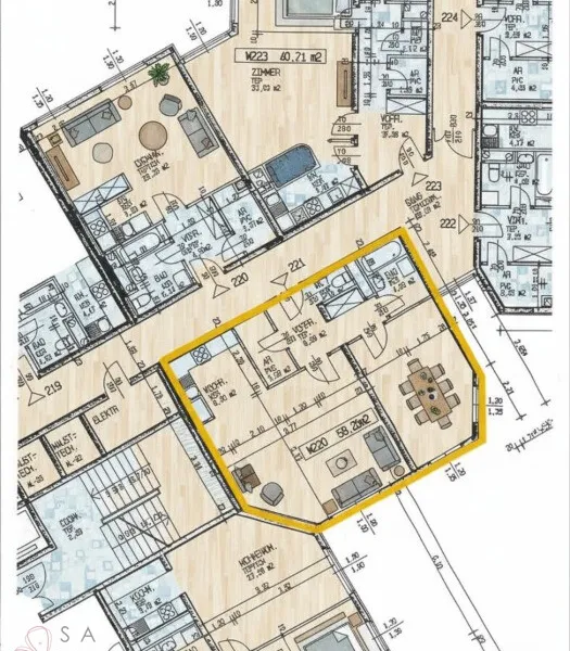 Diese teilweise sanierungsbedürftige ca. 57 m² große Wohnung befindet sich im 2. Stock eines Wohnhauses aus ca. 1955 mit Lift.