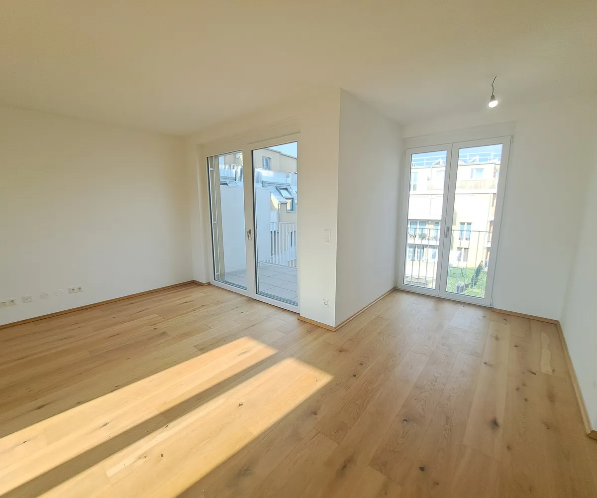 Hier stehen 83 attraktive, bereits bezugsfertige Wohnungen, umgeben von großzügigen Freiflächen, zum Verkauf. Ob mit einem gemütlichen Eigengarten, Balkon oder Terrasse – diese neue Wohnhausanlage bietet für jeden Wunsch die perfekte Außenfläche.