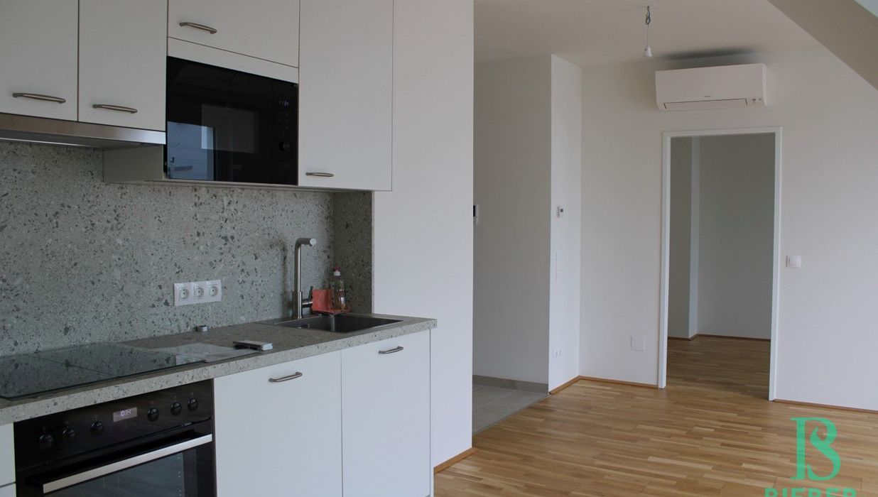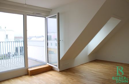 Im vielseitigen und grünen Floridsdorf, in einem 2023 erbauten Neubau, im 4. Liftstock, befindet sich diese sonnige und helle, ca. 45 m² große Dachgeschosswohnung mit herrlicher Süd-West Terrasse und Tiefgaragenplatz.