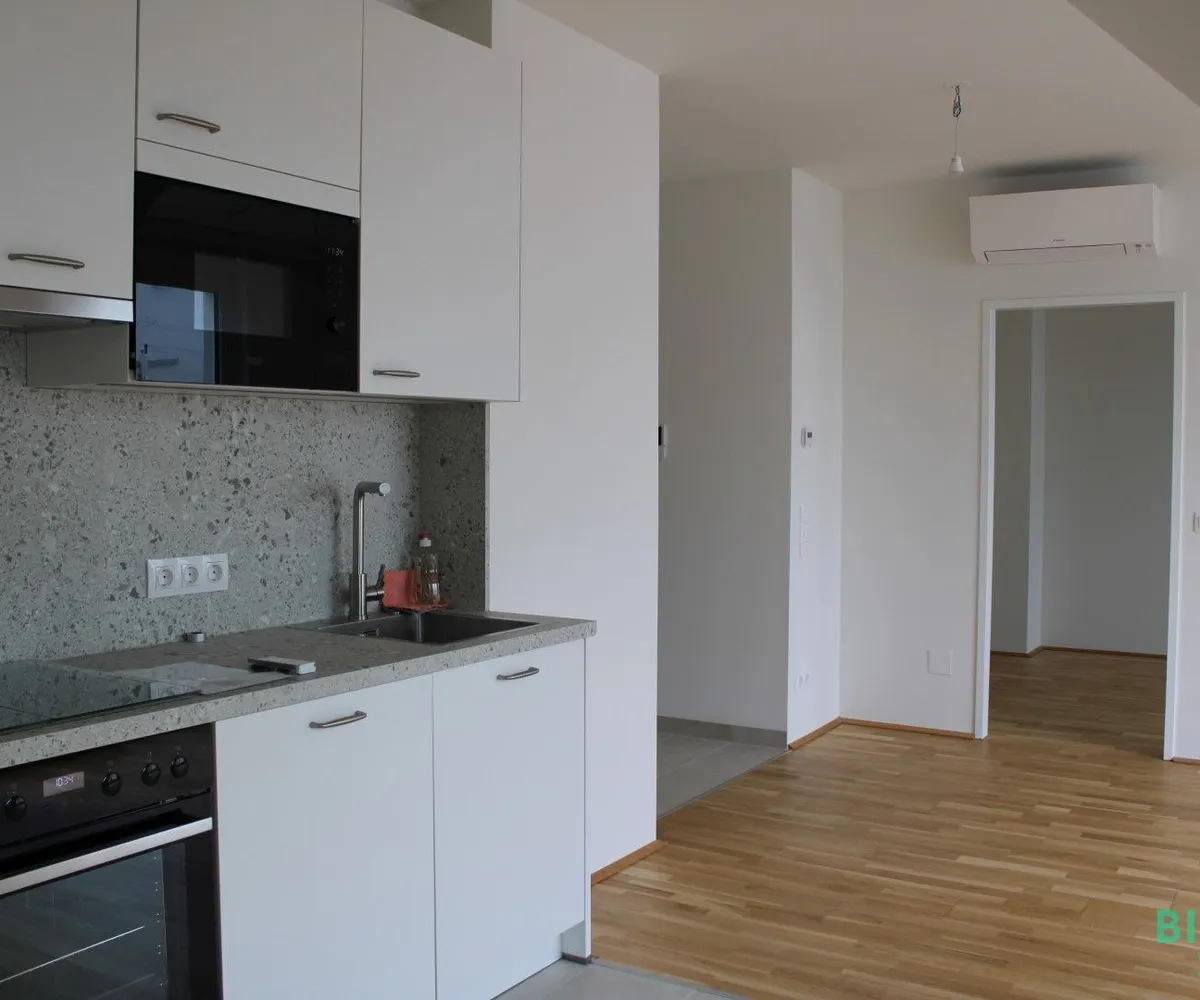 Die Ausstattung ist ausgezeichnet; Fußbodenheizung, getrennt regelbare Klimaanlage in allen Wohnräumen, elektrische Außenfenster Verschattung, wunderschöne Parkettböden in den Wohnbereichen, moderne und elegante Fliesenböden im Eingangs- und Sanitärbereich, Telefon-, Kabel- und Glasfaseranschluss, Videogegensprechanlage, ein großes Kellerabteil, ein allgemeiner Fahrradabstellraum, ein allgemein Garten mit Chillout Area und Spielplatz und ein Tiefgaragenabstellplatz welcher obligatorisch um 120,00 EUR/p.m. zur Miete hinzugerechnet wird.
