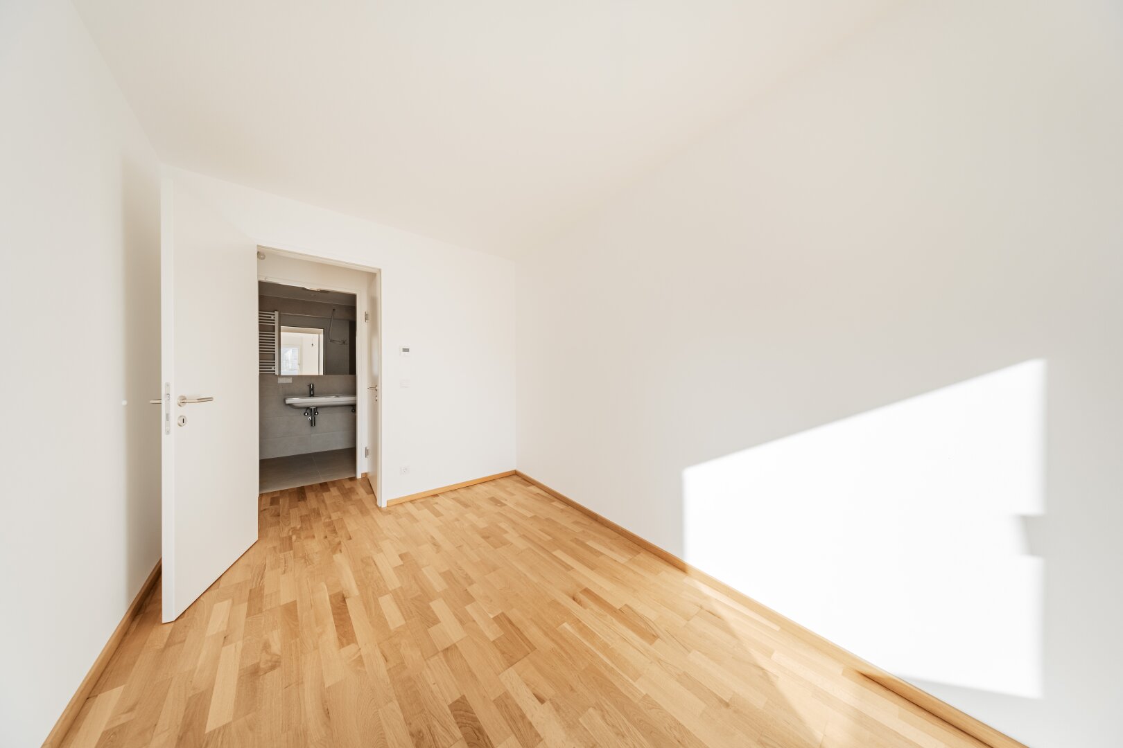 Zwei separat begehbare Zimmer befinden sich im hinteren Teil der Wohnung, das vordere Zimmer hat einen direkten Zugang zur Loggia.