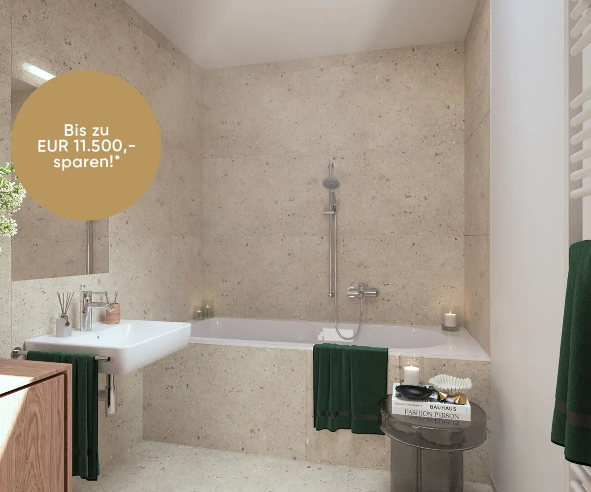 Die sorgfältig geplanten Eigentumswohnungen und Townhouses bieten mit ihren vielfältigen Grundrissen und Wohnungsgrößen für jede Lebensphase die ideale Wohnlösung. Ein behagliches Wohnambiente erzeugen die edlen Eichenparkettböden sowie die hochwertige Sanitärausstattung in den Bädern. Die Raumtemperatur lässt sich bequem über die Fußbodenheizung, die durch Fernwärme betrieben wird, sowie über die elektrisch bedienbaren Raffstores oder Rollläden regulieren. In den Dachgeschosswohnungen sorgen zusätzlich installierte Klimaanlagen dafür, dass es auch im Sommer angenehm kühl bleibt. Jede Wohneinheit verfügt über eine eigene private Freifläche, die die Wohnräume nach außen erweitert und einen idealen Rückzugsort für Erholung und Entspannung bietet.