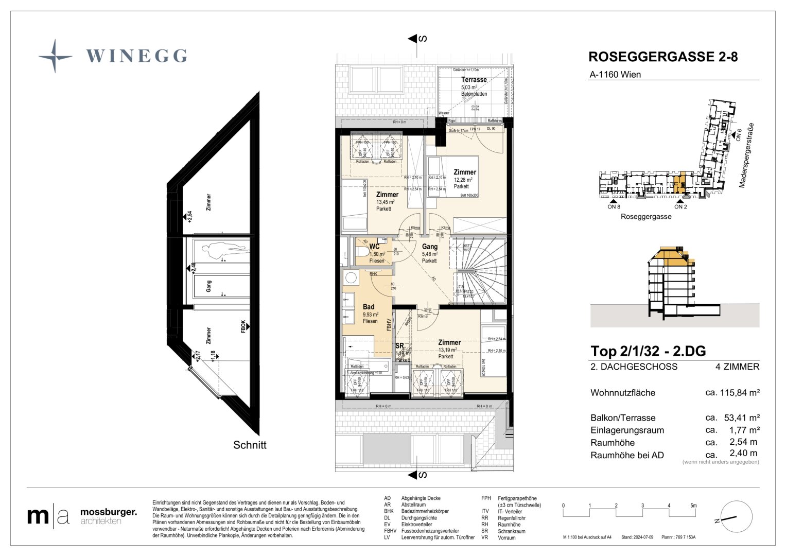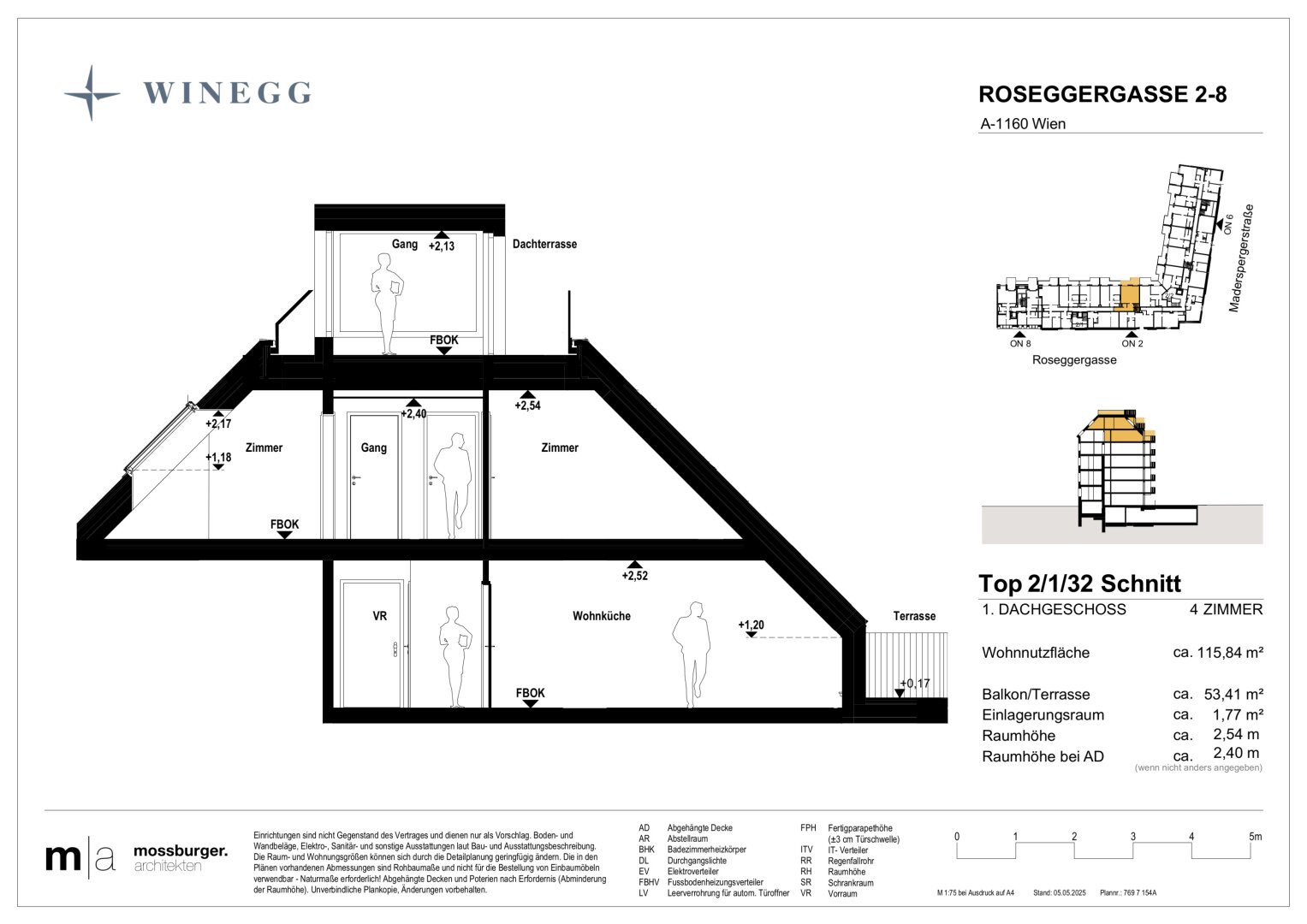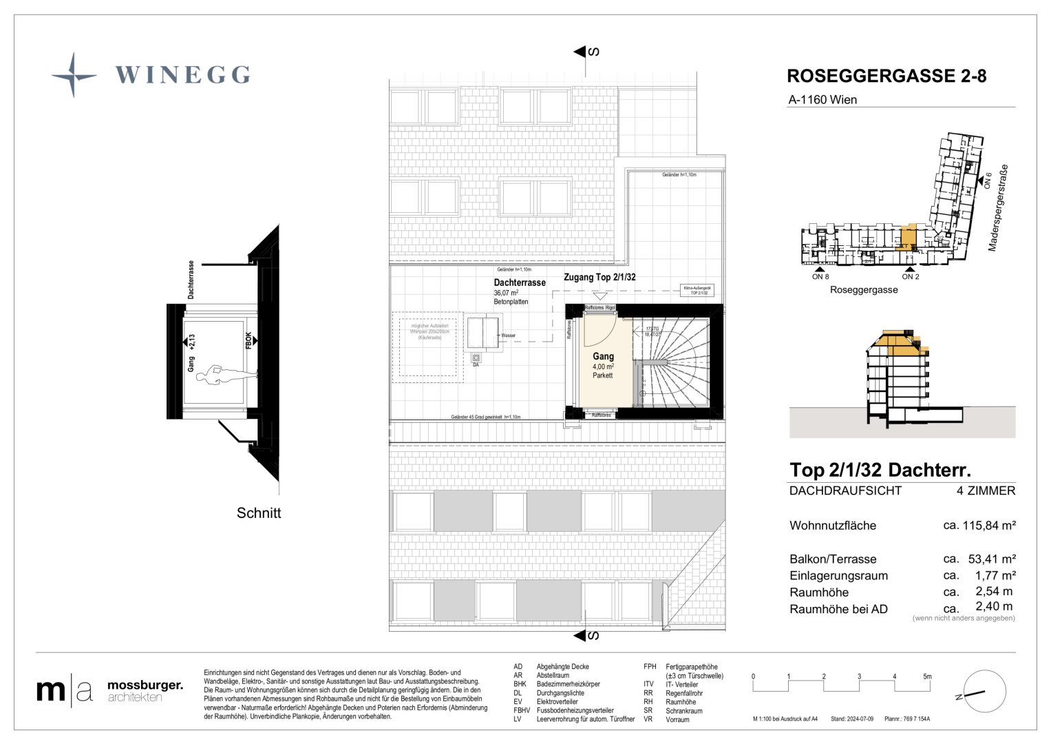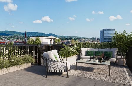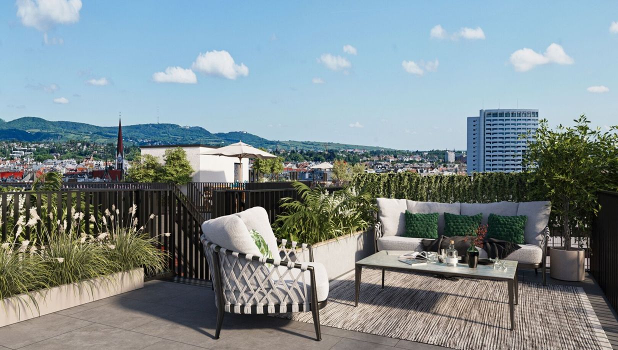 In der Roseggergasse 2–8, nahe des Wilhelminenbergs in 1160 Wien, entstehen insgesamt 124 exklusive Eigentumswohnungen. Die Wohnflächen variieren zwischen 39 und 245 m² und bieten zwischen 2 und 6 Zimmern. Darüber hin-aus bereichern private Freibereiche wie Eigengärten, Balkone, Terrassen, Loggien und spektakuläre Dachterrassen mit Blick auf die umliegenden Wiener Berge das Wohnerlebnis.