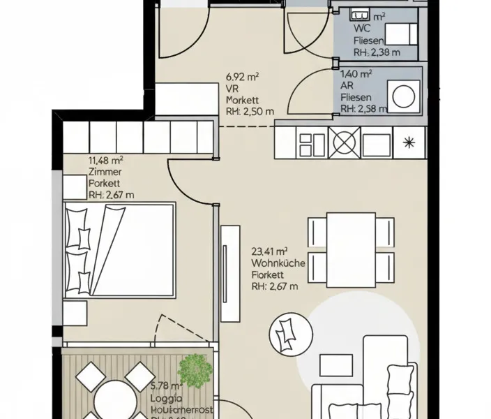 Weiters ist jede Wohnung bereits mit einer Küche samt aller Geräte ausgestattet.