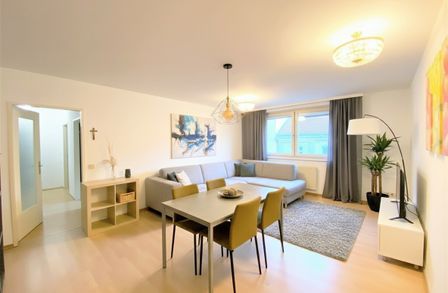 Diese charmante 95m² große Wohnung befindet sich im 3. Liftstock und besticht durch ihre Helligkeit sowie die südöstliche Ausrichtung des Wohnraums. Sie verfügt über eine separate, vollausgestattete Küche, drei getrennt begehbare Schlafzimmer, ein Badezimmer mit Wanne und Waschmaschine, ein separates WC sowie einen geräumigen Vorraum. Derzeit ist die Wohnung vollmöbliert, wird jedoch auf Wunsch auch teil- oder unmöbliert verkauft.