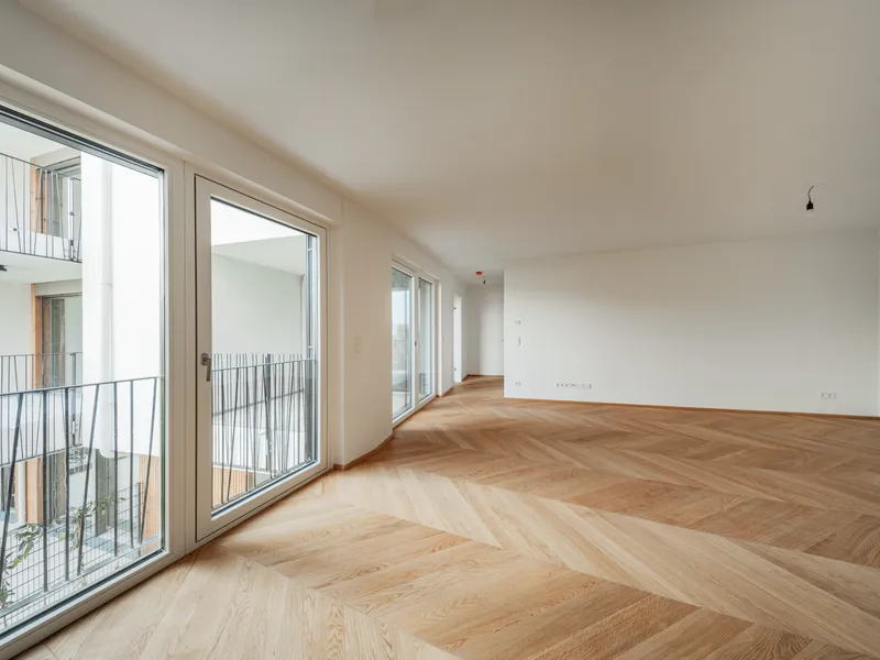 Die Wohnungen überzeugen mit hochwertigen Materialien und modernen Ausstattungsdetails. Langlebige Holz-Alu-Fenster mit Isolierverglasung sowie elektrisch angesteuerte Außenbeschattungselemente bieten hervorragenden Wohnkomfort. Edle Fischgrät-Parkettböden, großformatiges Feinsteinzeug in Bad und WC sowie Marken-Armaturen unterstreichen die Exklusivität der Ausstattung. Eine Fußbodenheizung sowie eine Deckenkühlung mittels Betonkernaktivierung sorgen für angenehmes Raumklima zu jeder Jahreszeit. Zudem sind alle Elektroinstallationen für ein Smart-Home-System vorbereitet. Ein umfassendes Sicherheitspaket mit Sicherheitstür und Videogegensprechanlage rundet das Angebot ab.