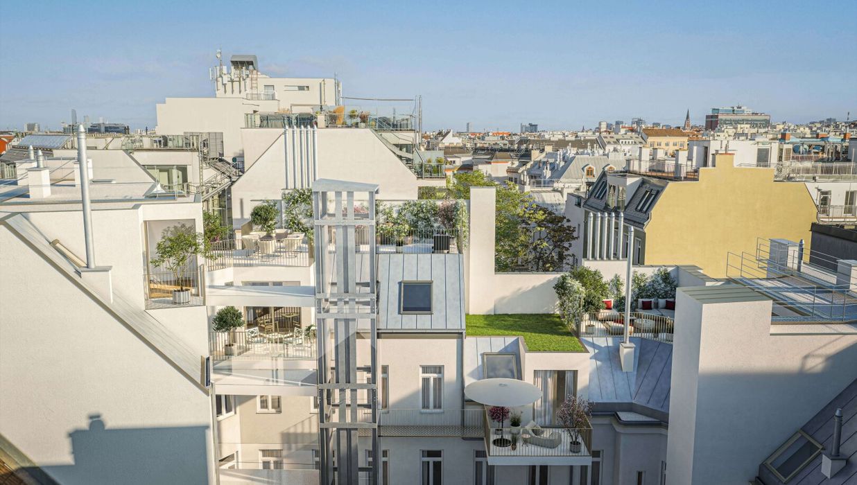 Die Liegenschaft befindet sich in zentraler Lage des 5. Wiener Gemeindebezirks an der historischen Schönbrunner Straße, die einst als kaiserliche Route zum Schloss Schönbrunn diente. Im neu ausgebauten Dachgeschoss eines traditionellen Altbaus entstehen 7 exklusive Wohnungen mit 2 bis 4 Zimmern und Wohnflächen von ca. 55 bis 127 m². Alle Wohnungen verfügen über Freiflächen. Einzigartig bei diesem Projekt ist außerdem der Freiraum bei der Gestaltung: Sie haben die Möglichkeit, Ihre Ausstattung aus zahlreichen Varianten frei zu kombinieren und sich so ein Zuhause zu schaffen, das sich an Ihre Wünsche und Vorstellungen anpasst. Dabei vereinen sich historischer Altbaucharme und moderne Wohnstandards harmonisch miteinander.