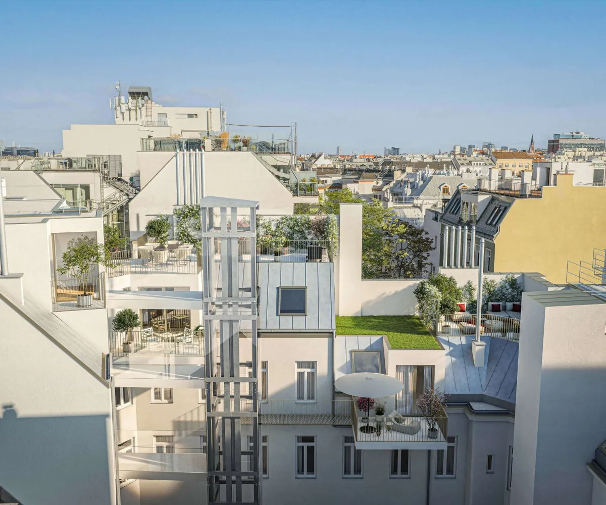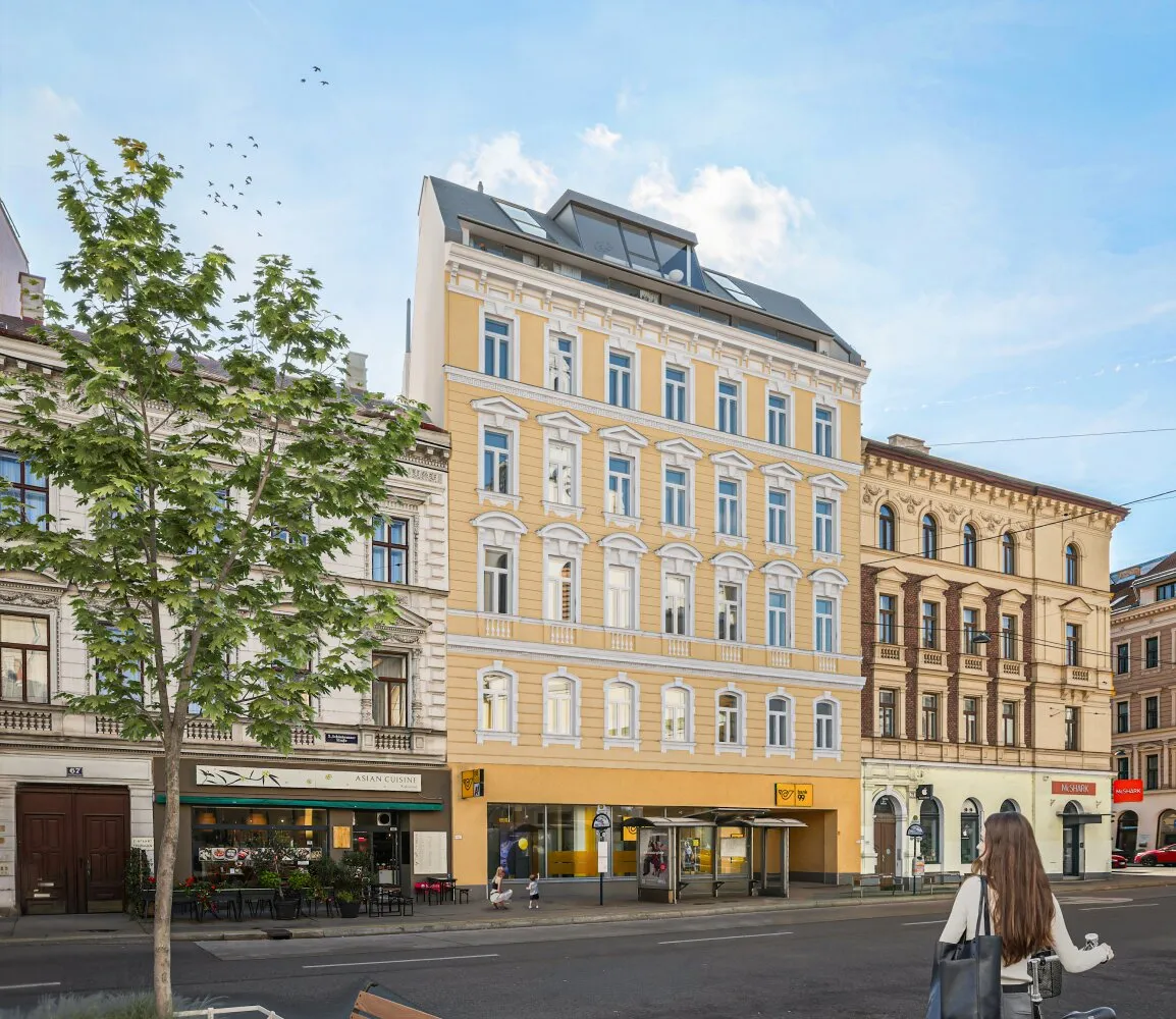 Die Liegenschaft befindet sich in zentraler Lage des 5. Wiener Gemeindebezirks an der historischen Schönbrunner Straße, die einst als kaiserliche Route zum Schloss Schönbrunn diente. Im neu ausgebauten Dachgeschoss eines traditionellen Altbaus entstehen 7 exklusive Wohnungen mit 2 bis 4 Zimmern und Wohnflächen von ca. 55 bis 127 m². Alle Wohnungen verfügen über Freiflächen. Einzigartig bei diesem Projekt ist außerdem der Freiraum bei der Gestaltung: Sie haben die Möglichkeit, Ihre Ausstattung aus zahlreichen Varianten frei zu kombinieren und sich so ein Zuhause zu schaffen, das sich an Ihre Wünsche und Vorstellungen anpasst. Dabei vereinen sich historischer Altbaucharme und moderne Wohnstandards harmonisch miteinander.