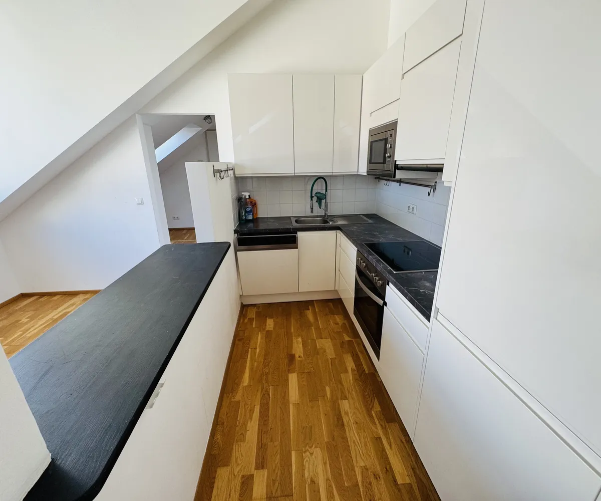 Das Herzstück der Wohnung ist der großzügige, helle Wohnraum mit offener Einbauküche , der durch seine loftartige Gestaltung ein besonders angenehmes Wohngefühl vermittelt. Diese Wohnung vereint urbanes Wohnen mit hoher Lebensqualität und stellt eine seltene Gelegenheit im Herzen des 9. Bezirks dar.