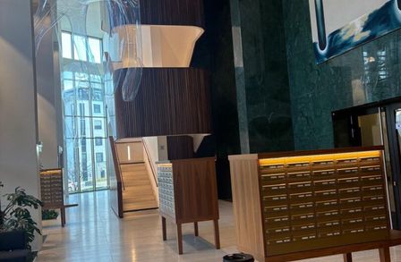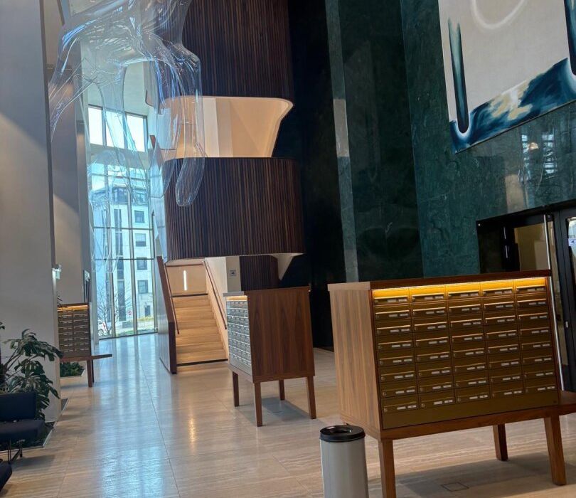 Das Haus verfügt über ein exklusives Foyer, einen Kinderwagenabstellraum, einen Kinderspielraum, ausreichend (überdachte) Fahrradabstellplätze, eine Waschküche, Gemeinschaftsterrassen einen Bewegungsraum und sogar einen Kindergarten