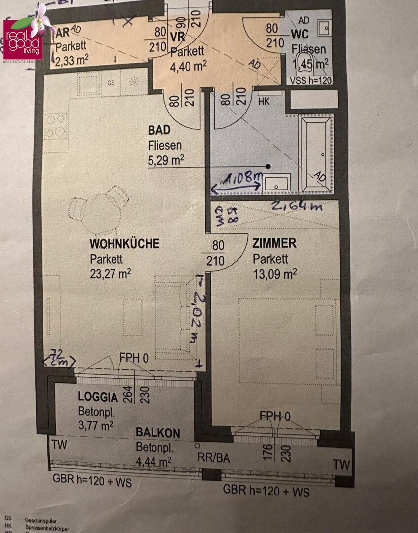 - Wohnküche mit Ausgang auf die Loggia bzw. den Balkon (mit Steckdose und Wasseranschluss)