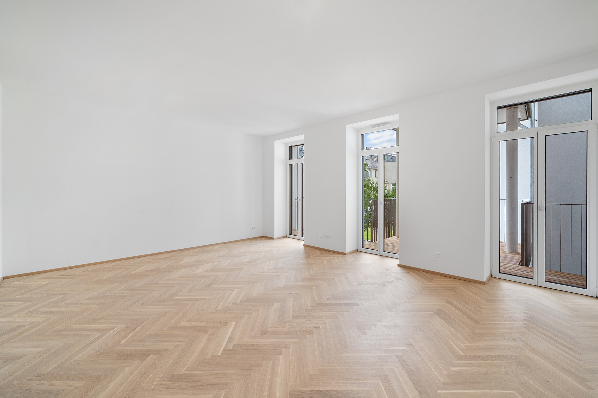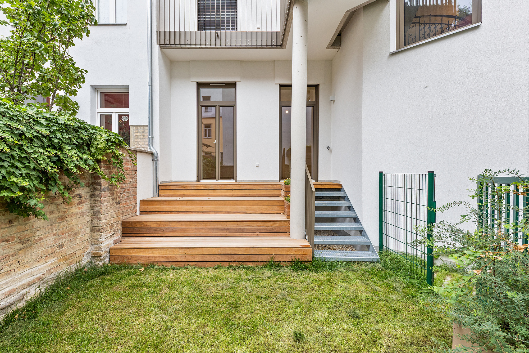 Es entstehen 22 Wohneinheiten, die fast alle über Freiflächen (Garten/Balkon/Terrasse) verfügen. Weiters wird die Liegenschaft generalsaniert.