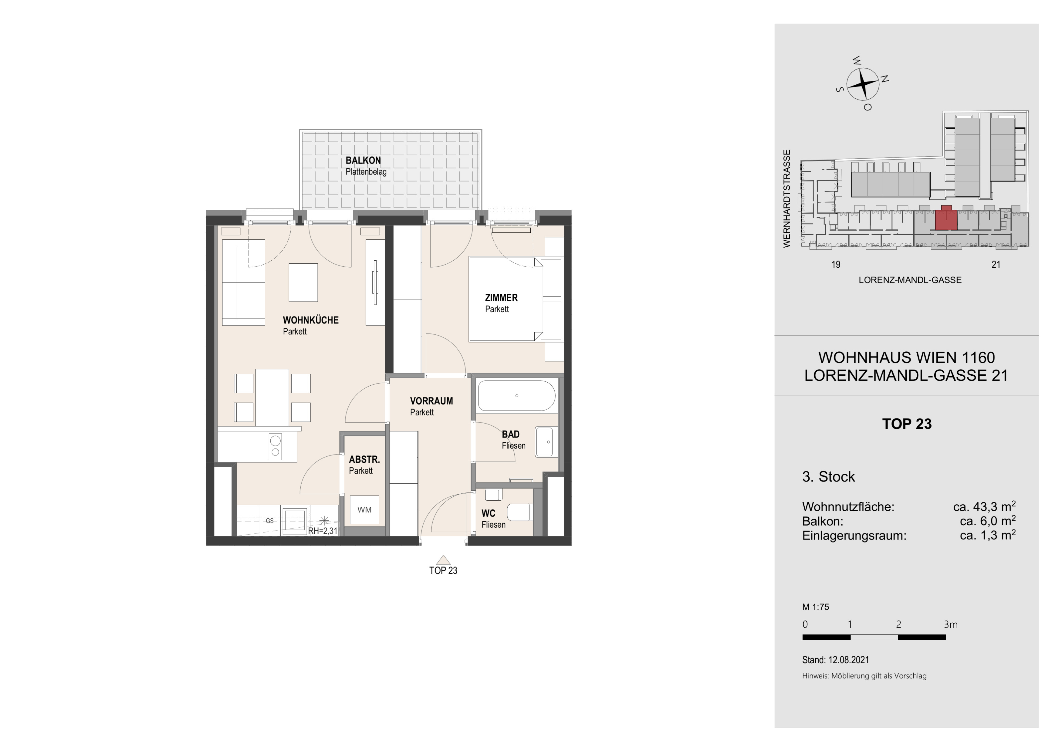 Die Wohnung befindet sich im 3.OG und verfügt über einen großzügigen Wohnraum mit voll ausgestatteter Küche, ein Schlafzimmer, ein Badezimmer mit Badewanne, ein separates WC, einen Abstellraum mit Waschmaschinenanschluss, sowie einen Vorraum. Der dazugehörige Balkon rundet das Wohnerlebnis perfekt ab!
