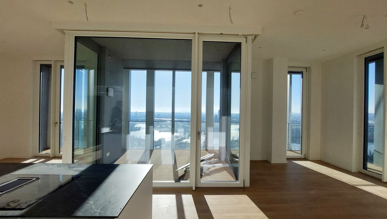 In einzigartiger Lage, direkt bei der U1-Station Kagran und vis-à-vis vom Donau Zentrum, entsteht ein exklusiver, ca. 155m hoher Wohnturm mit 45 Etagen. Die insgesamt 347 Mietwohnungen bieten einen vielfältigen Wohnungsmix: von smart geschnittenen 1,5-Zimmer-Apartments ab ca. 38 m² über komfortable 2-Zimmer-Wohnungen bis hin zu großzügigen 3- und 4-Zimmerwohnungen mit bis zu ca. 80 m².