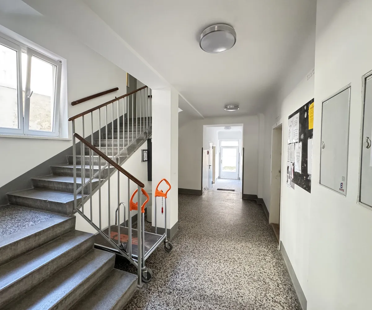 Ein frisch saniertes und ausgemaltes Stiegenhaus sorgt für einen einladenden ersten Eindruck