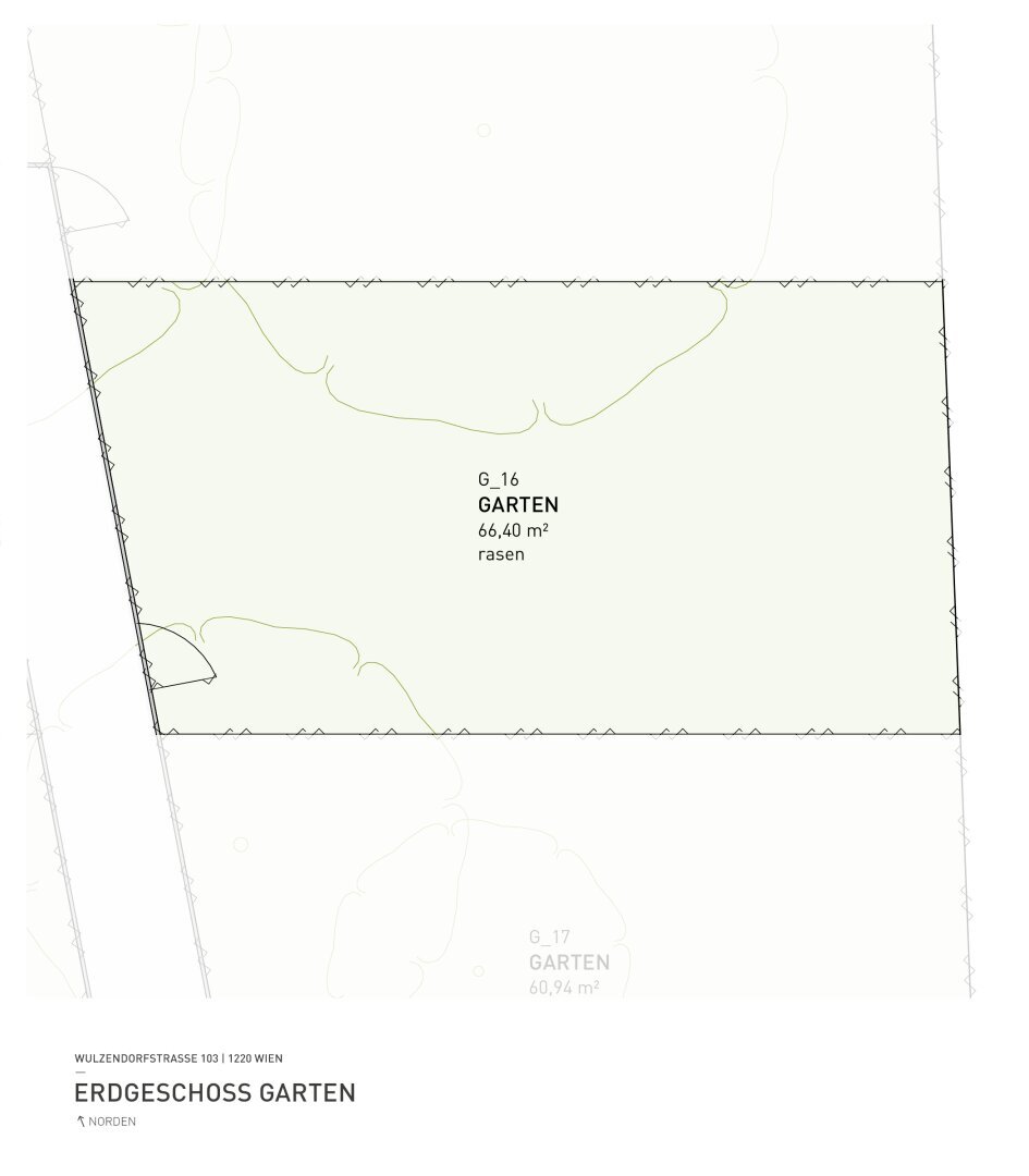 Die Erschließung der Wohnhausanlage erfolgt über ein zentrales Stiegenhaus mit Aufzug, welches alle Geschosse umfasst. In der Tiefgarage mit Zufahrt von der Wulzendorfstraße sind insgesamt 34 PKW-Stellplätze untergebracht. Technik- und Einlagerungsräume sowie der Fahrradabstellraum befinden sich im Kellergeschoss. Kinderwagenabstell- und der Müllraum sind im Erdgeschoss, in unmittelbarer Nähe zum Hauptzugang, situiert. Die Geschäftslokale befinden sich im Erdgeschoss, die Wohnungen befinden sich im Erdgeschoss und 3 Obergeschossen (teilweise mit Eigengarten, Terrasse, Balkon oder Loggia).