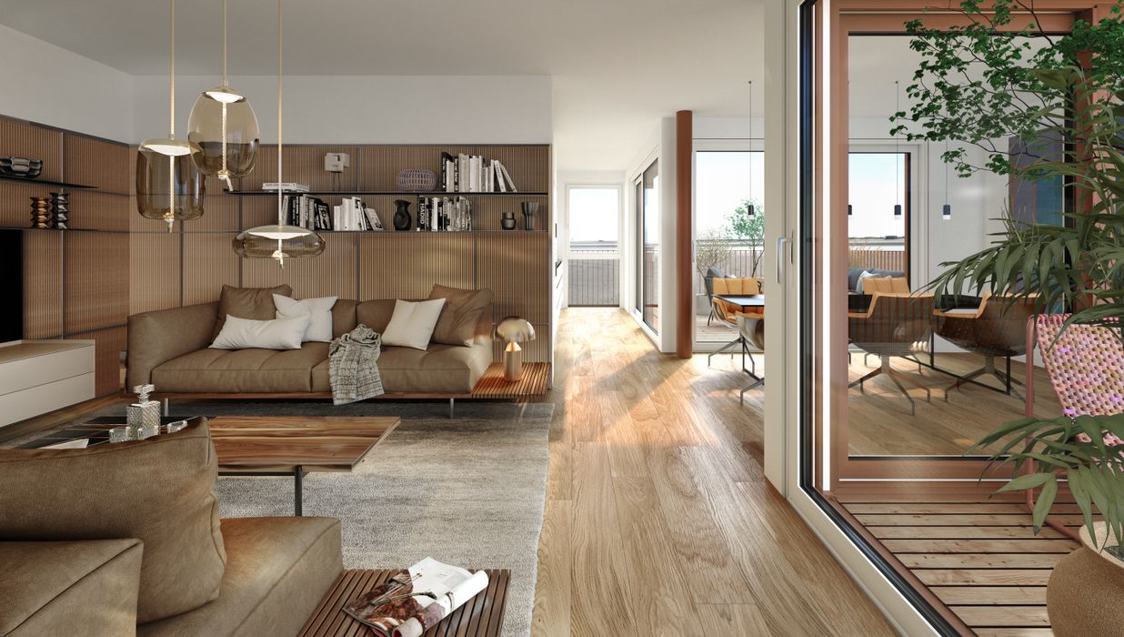 Alle vier Bautrakte bieten eine Vielzahl an Wohnungen unterschiedlicher Größe und Ausstattung, von gemütlichen Ein-Zimmer-Apartments bis hin zu geräumigen Penthouse-Wohnungen mit Terrassen und Blick auf die Stadt.