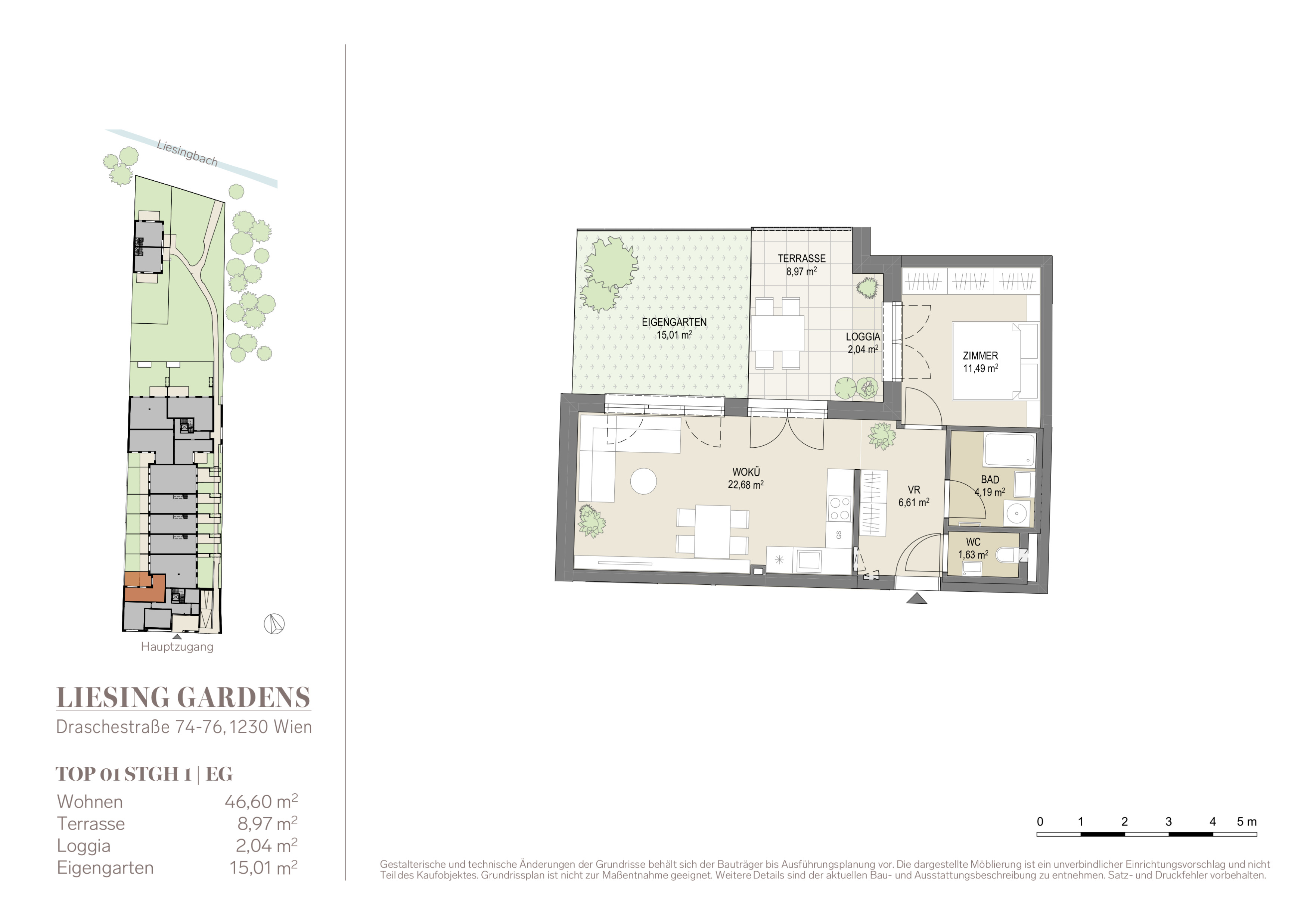 Die Lage von Liesing Gardens verspricht eine perfekte Verbindung von urbanem Komfort und naturnaher Idylle. Eingebettet zwischen Atrien- und Reihenhäusern sowie den Grünanlagen entlang des Liesingbachs bietet dieses Projekt eine Oase der Ruhe und Erholung direkt vor der Haustür.