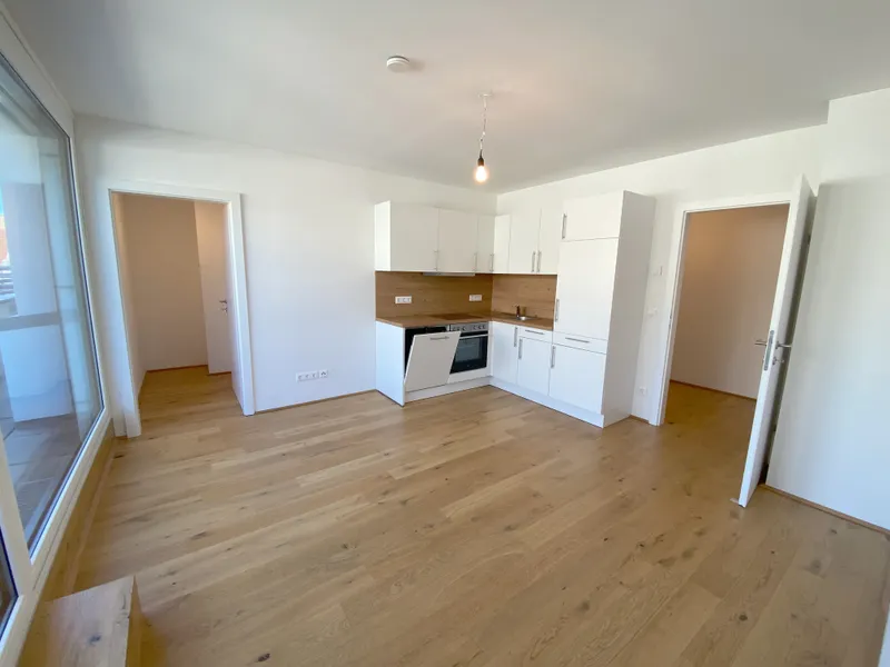Diese traumhafte 2 Zimmerwohnung befindet sich im 5. Obergeschoss und besticht durch einen intelligenten und durchdachten Grundriss. Sie verfügt über eine großzügige Wohnküche mit eingebauter Küche, ein Schlafzimmer, ein Badezimmer mit Dusche, Toilette und Waschmaschinenanschluss sowie einen Vorraum. Der Balkon rundet das Wohnerlebnis perfekt und lädt zum gemütlichen Beisammensein ein.