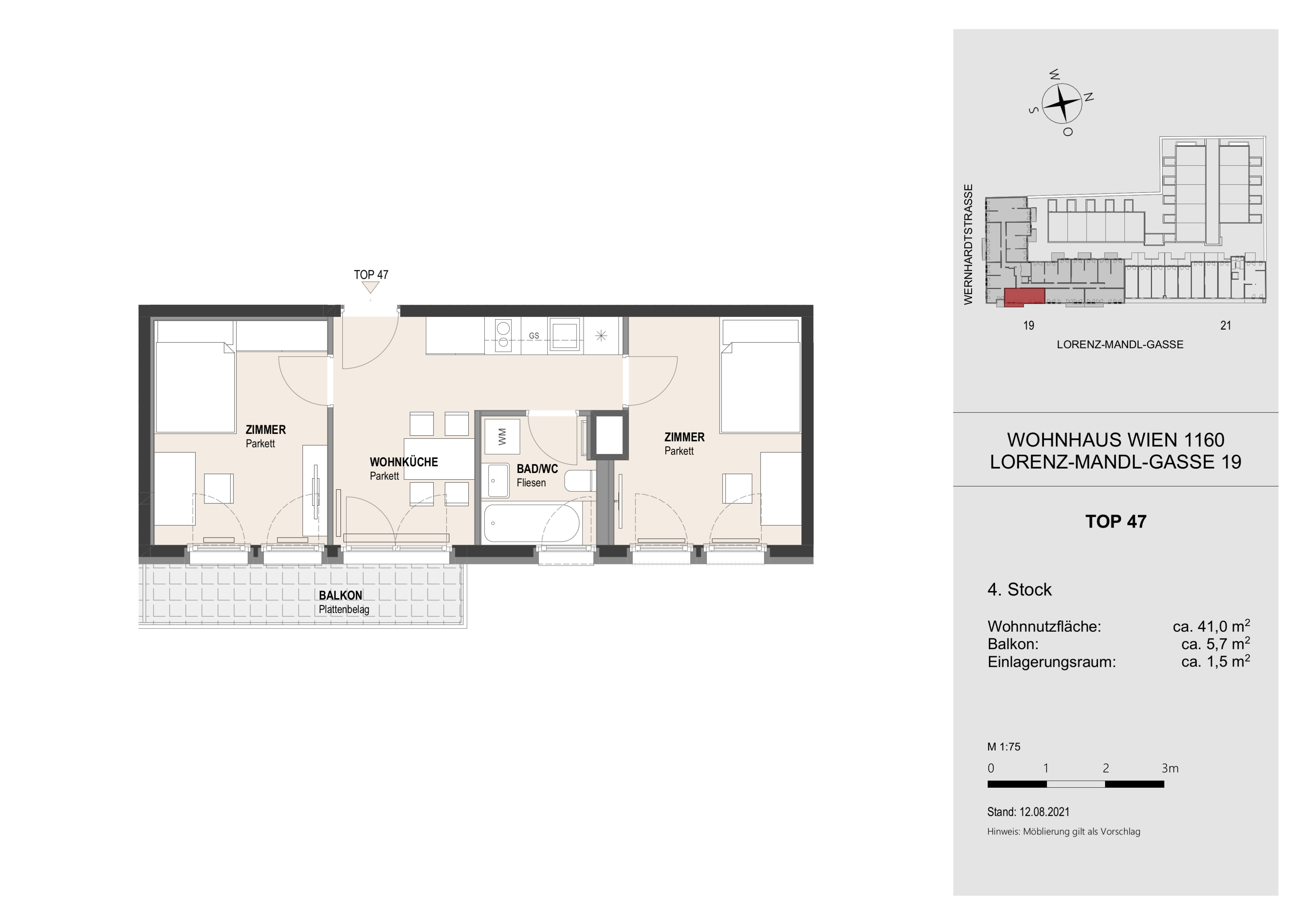 Die Wohnung befindet sich im 16. Wiener Gemeindebezirk und zeichnet sich sowohl durch die großartige Anbindung in die Innenstadt sowie die Infrastruktur rund um die Liegenschaft aus. Durch die in unmittelbarer Nähe befindlichen öffentlichen Verkehrsmittel, lassen sich die Innenbezirke Wiens in weniger als 20 Minuten erreichen. Optional ist es ebenfalls möglich, einen Garagenplatz zusätzlich anzumieten.