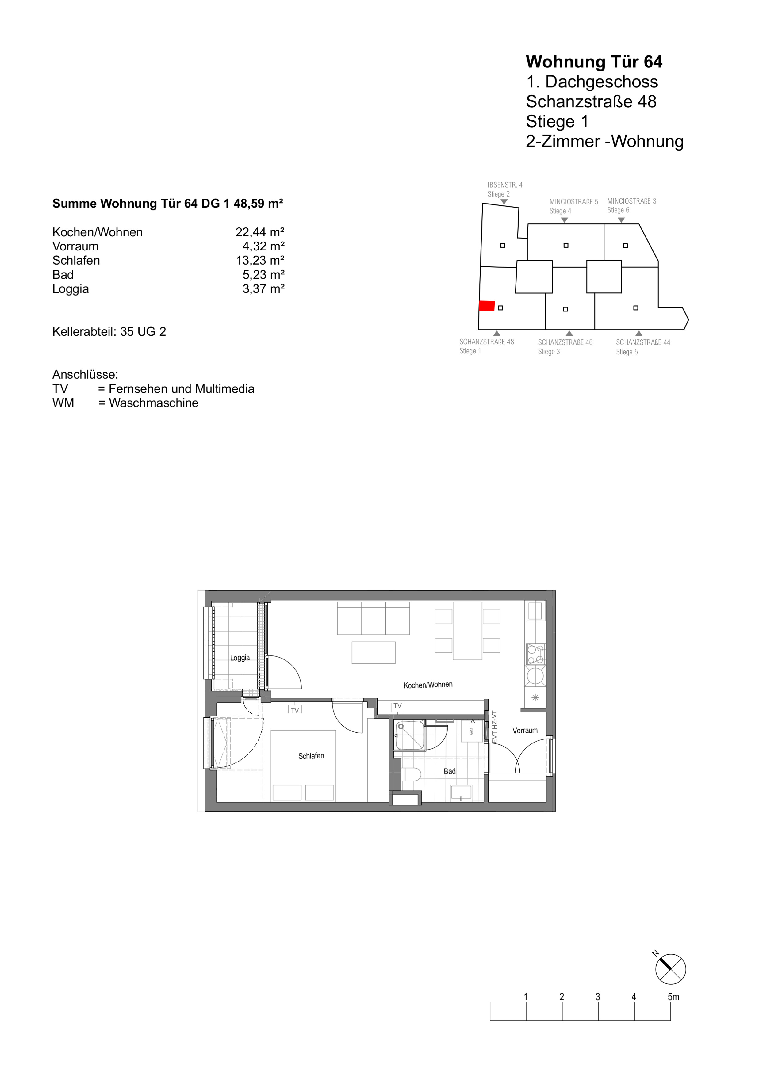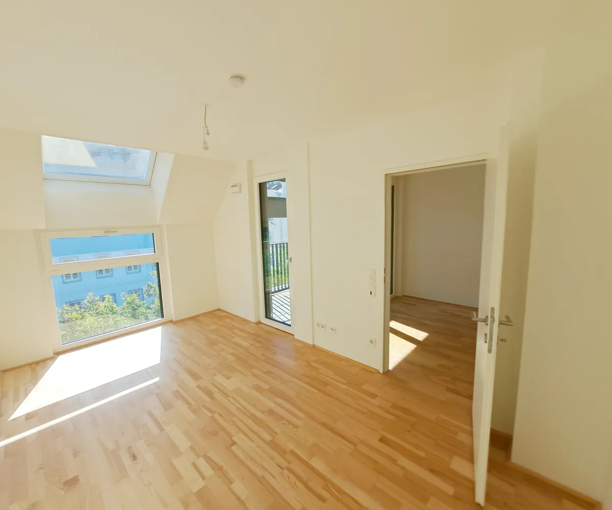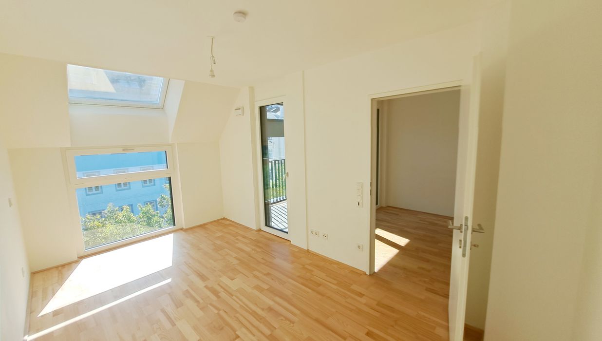 Die Wohnung selbst befindet sich im 1. Dachgeschoss und verfügt über eine großzügige Wohnküche mit vollausgestatteter Einbauküche und Zugang zur Loggia, ein getrennt begehbares Schlafzimmer, ein Badezimmer mit Dusche, Waschmaschinenanschluss und WC, sowie einen Vorraum. Die dazugehörige Loggia lädt zum gemütlichen Verweilen ein und rundet das Wohnerlebnis perfekt ab!