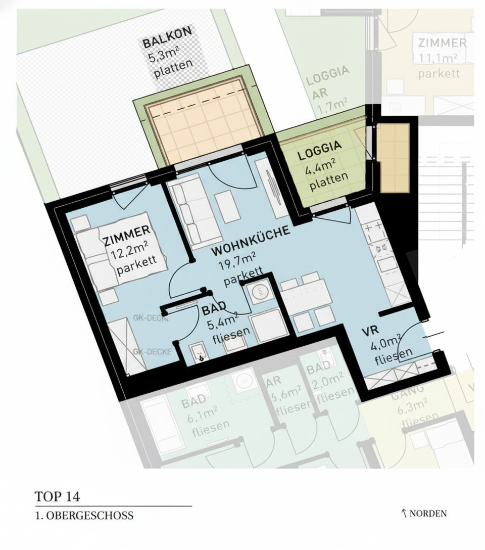 Bei diesem Angebot handelt es sich um eine Vorsorgewohnung, die zu Vermietungszwecken erworben wird. Der angegebene Kaufpreis versteht sich daher zzgl. 20% USt. Diese Daten sind vorbehaltlich möglicher Änderungen.