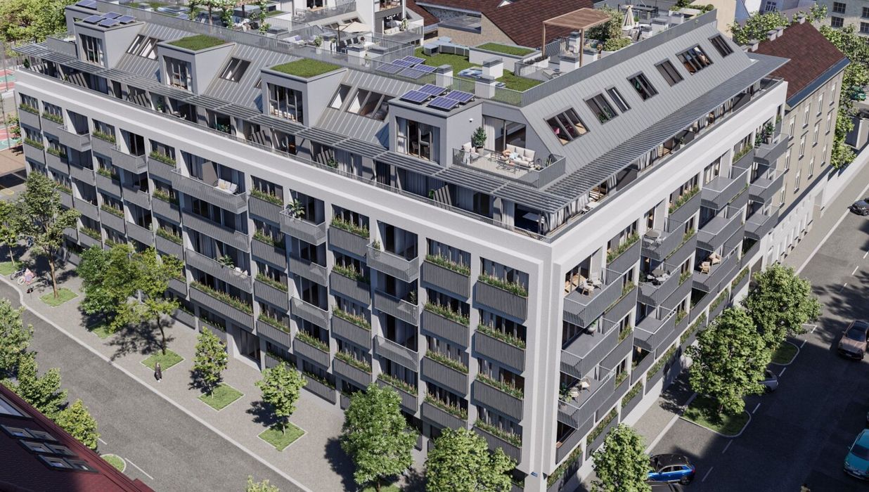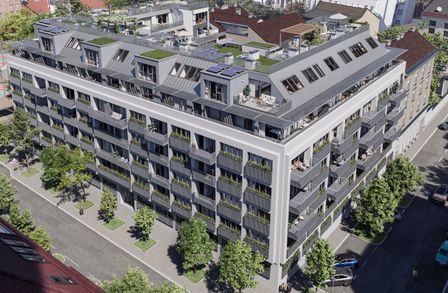 In einer verkehrsberuhigten Sackgasse und direkt am Arik-Brauer-Park gelegen entstehen 150 hochwertige Eigentumswohnungen mit Wohnflächen von ca. 30 m² bis 130 m², die für unterschiedlichste Lebensbedürfnisse und Wohnkonzepte ausgelegt sind. Die Wohnungen bieten attraktive Extras wie private Gärten, Balkone, Loggien und eine beeindruckende Panorama-Terrasse, die einen atemberaubenden 360° Panoramablick über Wien eröffnet. Mit großzügigen Raumhöhen schaffen wir ein offenes und luftiges Wohngefühl. Darüber hinaus stehen Tiefgaragenstellplätze zur Verfügung und moderne Energiekonzepte, wie Photovoltaik und Fernwärme, garantieren eine nachhaltige und effiziente Energieversorgung. Hier wohnen Sie stilvoll, zukunftsorientiert und überaus komfortabel.