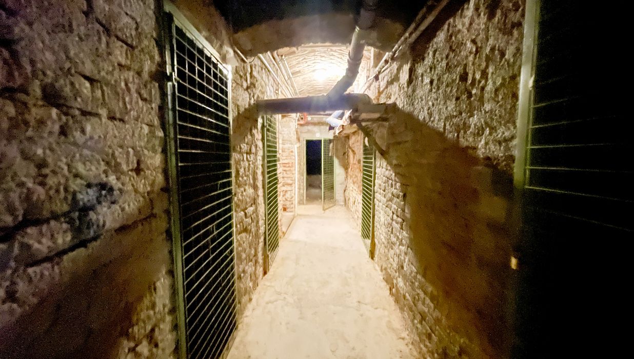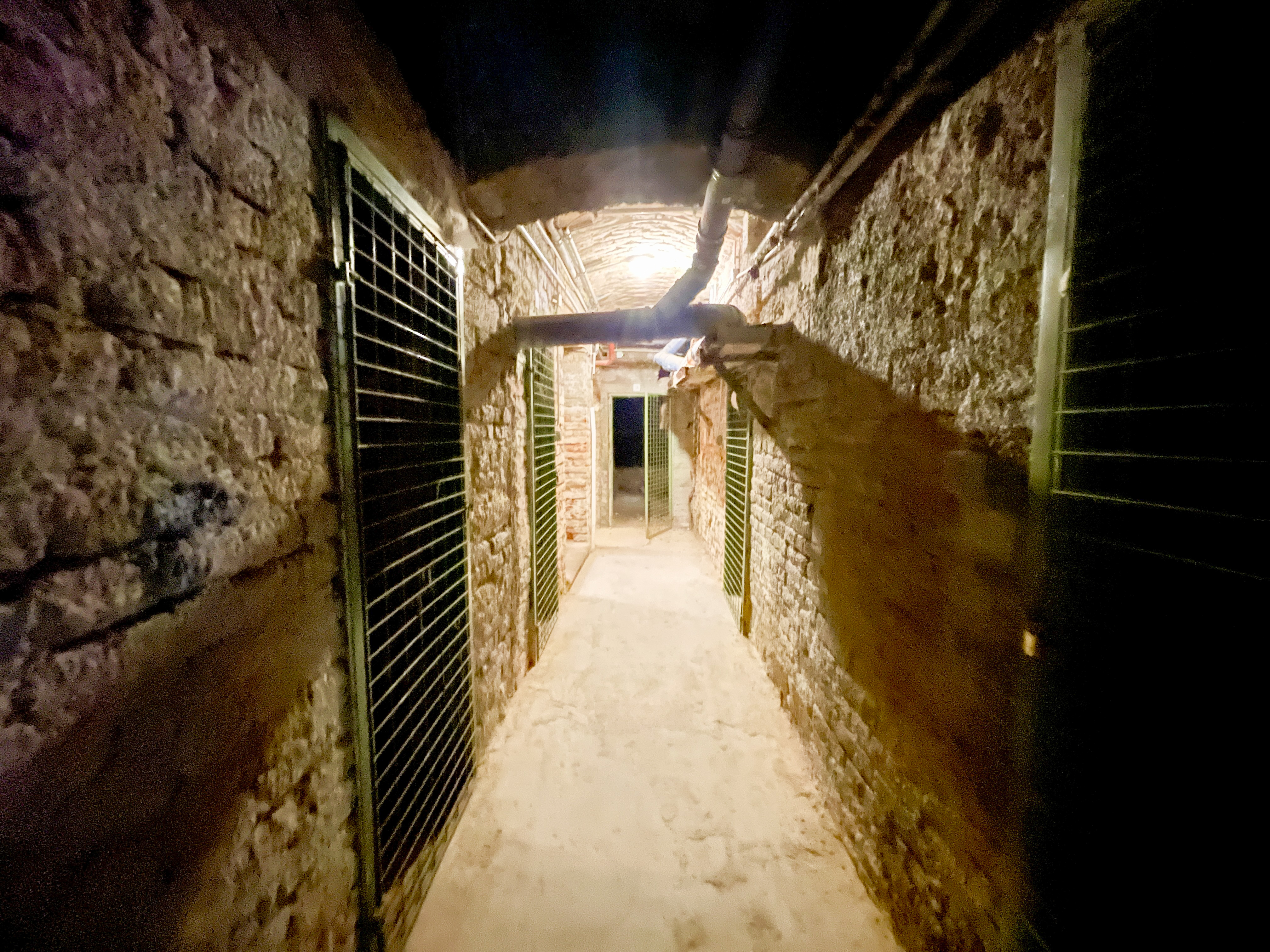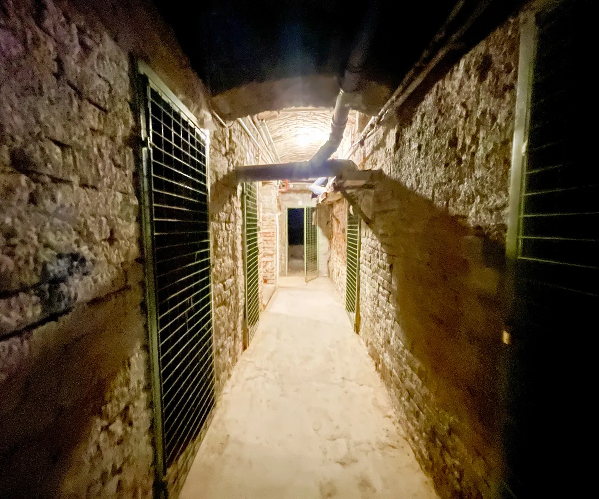 Originale Mosaikfliesen und eine traditionelle Bassena in den Gängen