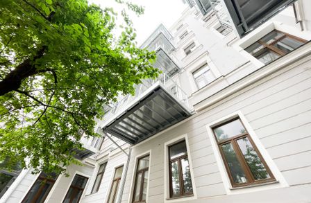 Modernisierte Eleganz mit historischem Flair Im Jahr 2003 wurde das Gebäude unter der Leitung des renommierten Architekten Géza Batthyány umfassend renoviert. Dabei wurde großer Wert darauf gelegt, die charakteristischen Altbauelemente zu bewahren, während zugleich moderner Wohnkomfort integriert wurde. Hohe Räume, kunstvolle Stuckdecken sowie aufwendig gestaltete Verzierungen im Eingangsbereich zeugen von der architektonischen Qualität des späten 19. Jahrhunderts.
